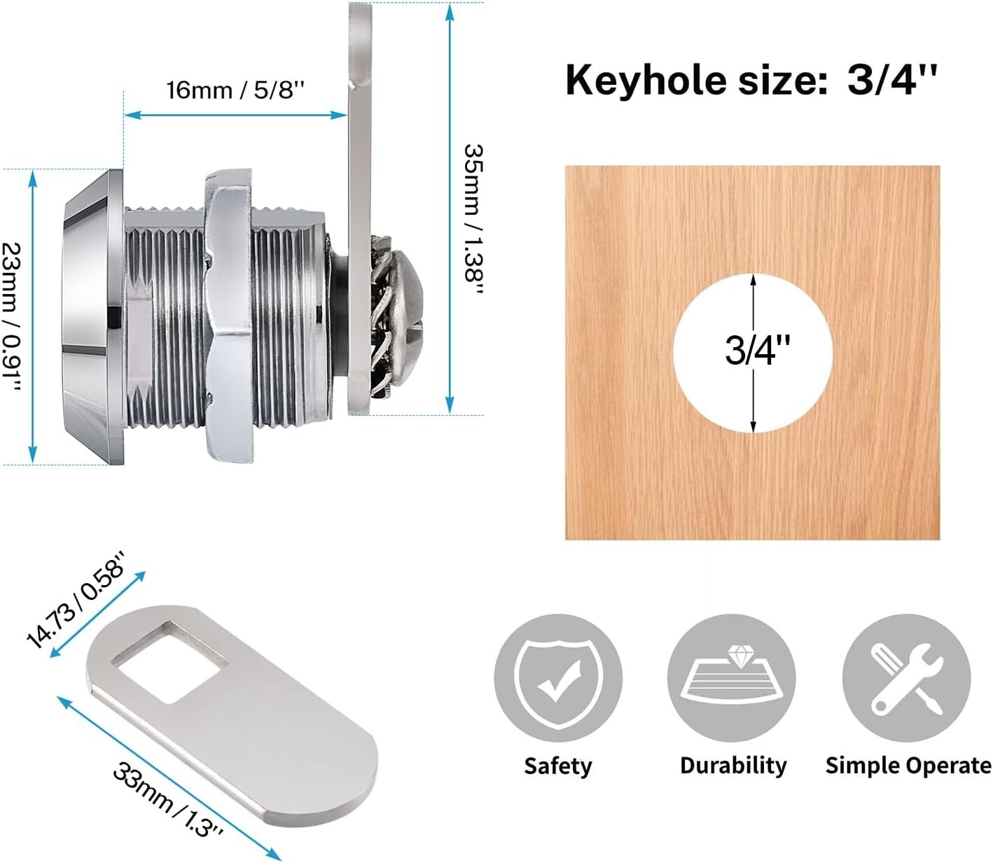 Don't settle for inferior cabinet locks that wear out quickly. Our Premium Keyed-Alike Cabinet Cam Locks are made of premium zinc alloy for better durability and performance. With a universal design, they can fit a variety of applications, from desk drawers to cabinets and more. The convenient keyed-alike lock set allows you to operate all locks with just one key, and the non-key retaining design makes it easy to remove the key. Plus, these locks provide safety and protection for your important items and offer high privacy for personal belongings. With our two-sided key design, you can easily use the locks even in the dark. Trust in our great customer service and support for any assistance you may need. Upgrade your cabinet locks today with our Premium Keyed-Alike Cabinet Cam Locks!