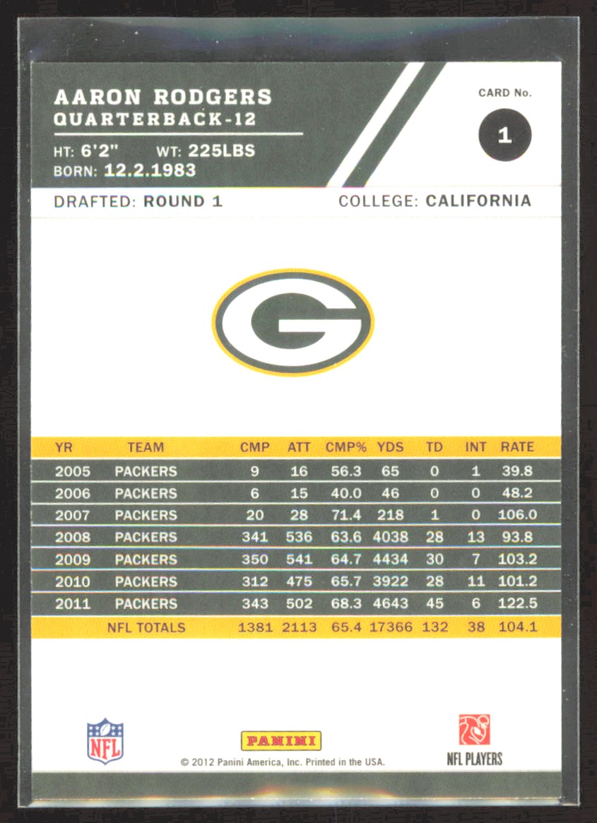 2012 Score Aaron Rodgers Green Bay Packers #1