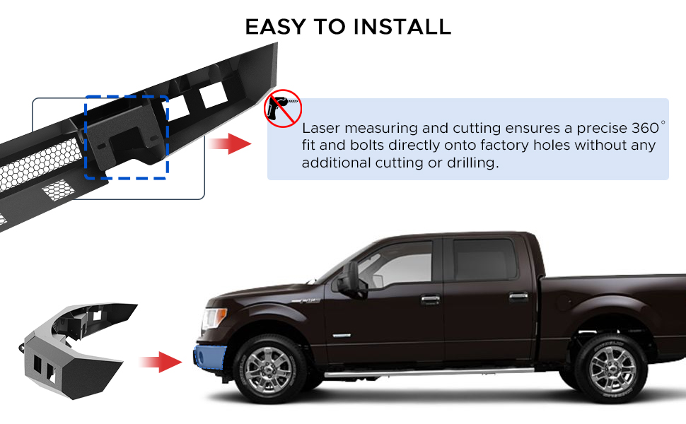 ♥ 【Easy to Replace】Easy, Bolt-on Installation.Our bumper Includes the Paper Instruction and are Engineered to be a Direct Bolt-on Upgrade Using just Basic Hand Tools, so there is No Drilling or Cutting Required for a Clean Straight Forward Installation.