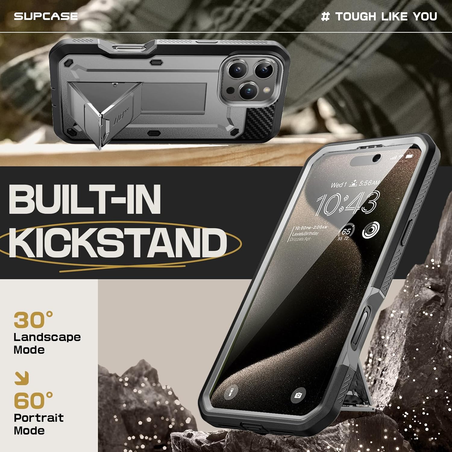 360° full-body coverage with 20ft drop protection. Made with shock-absorbing TPU adhering to US military-grade standards. Proven durability with outdoor activities with sports and hiking as well as heavy-duty environments like construction sites.