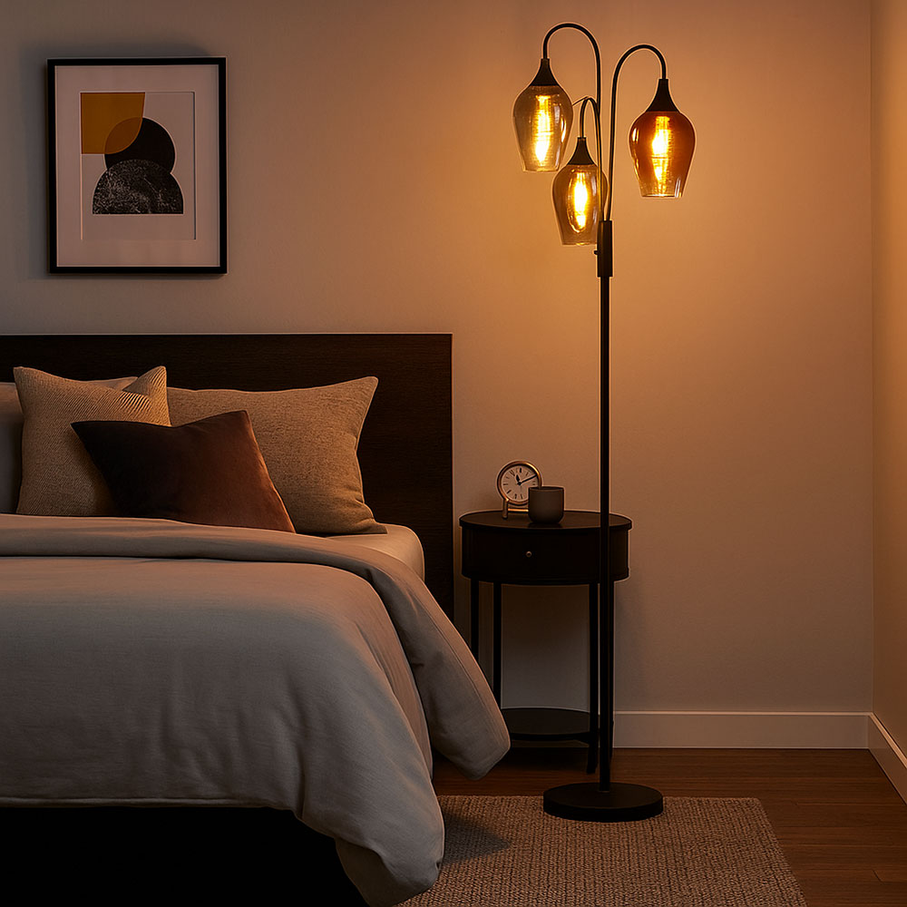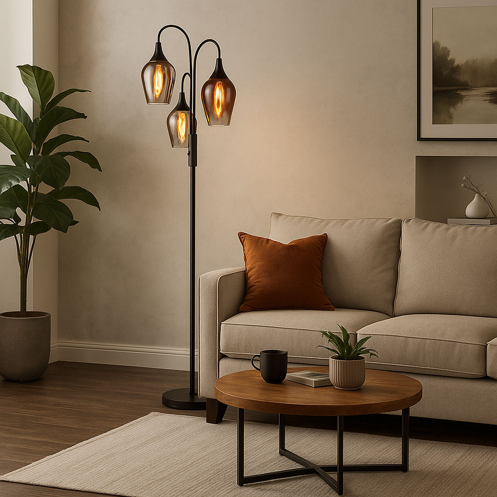 Mit ihrer Höhe von 165 cm und dem Durchmesser von 43 cm fügt sich die Leuchte harmonisch in moderne wie klassische Einrichtungen ein. Sie ist mit drei E27-Fassungen ausgestattet und erlaubt damit individuelle Lichtgestaltung ganz nach Ihrem Geschmack – ob warmes Licht zum Entspannen oder helles Licht zum Lesen. Der integrierte Schalter sorgt für bequeme Bedienung, während die gebogene Form einen weichen Lichtwurf in den Raum ermöglicht. Ideal als Lichtquelle im Wohnzimmer, Leseecke oder Schlafzimmer – diese Leuchte verbindet Ästhetik mit Funktionalität und setzt stilvolle Akzente in Ihrem Zuhause.