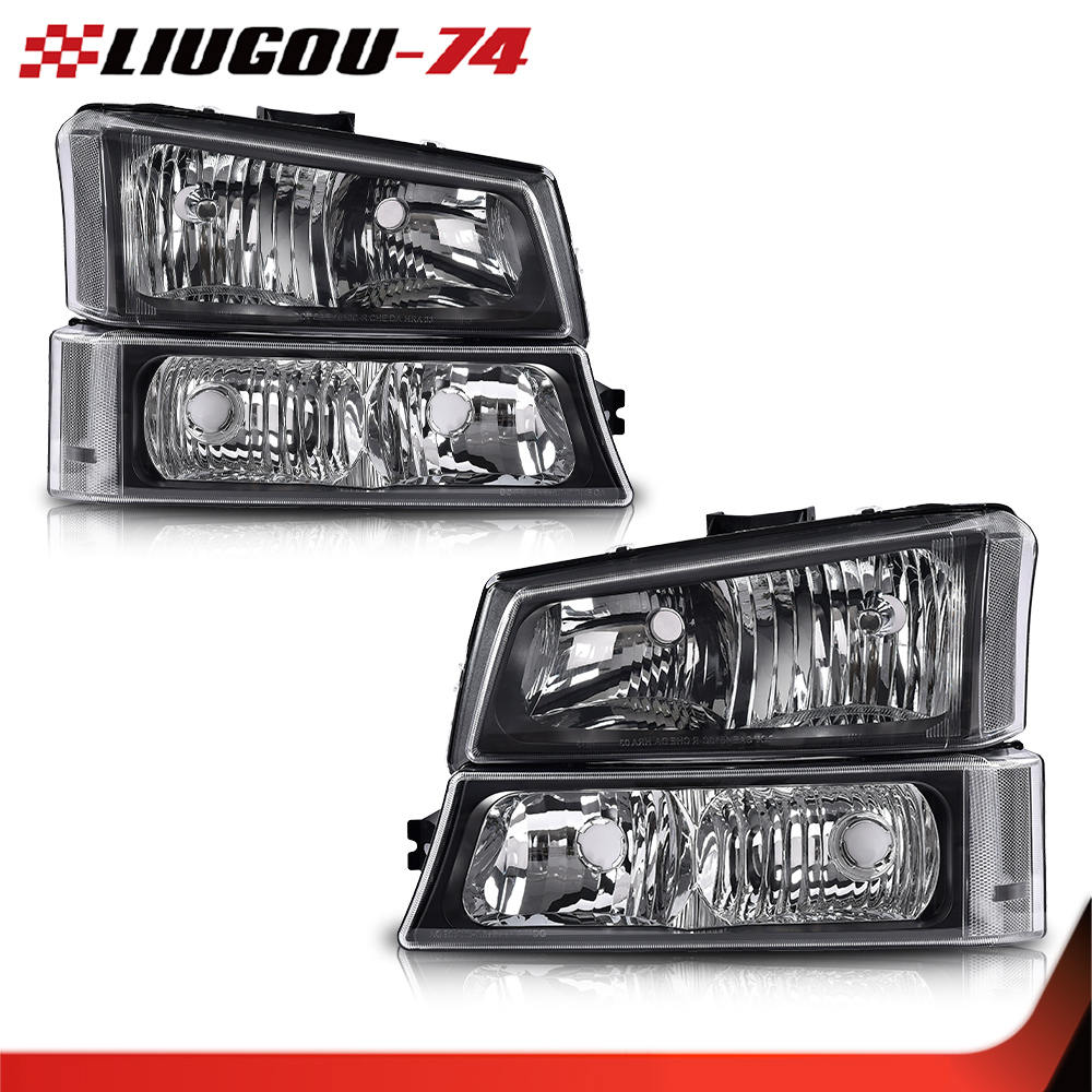 Black Housing Headlight Clear Signal+Bumper Fit For 03-07 Silverado/Avalanche US