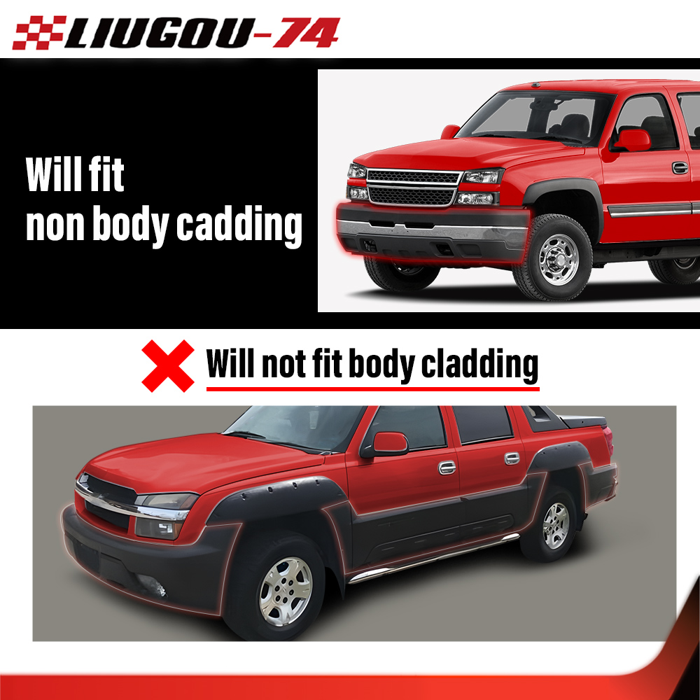 Fit For 03-06 Chevrolet Avalanche 1500 2500 Fit For 03-06 Chevrolet SIlverado 1500 2500 3500 Fit For 03-06 Chevrolet SIlverado 1500 HD 2500 HD Fit For 2007 Chevrolet Silverado 1500 1500 HD 2500 HD 3500 Classic Fit Models without Factory Cladding ONLY