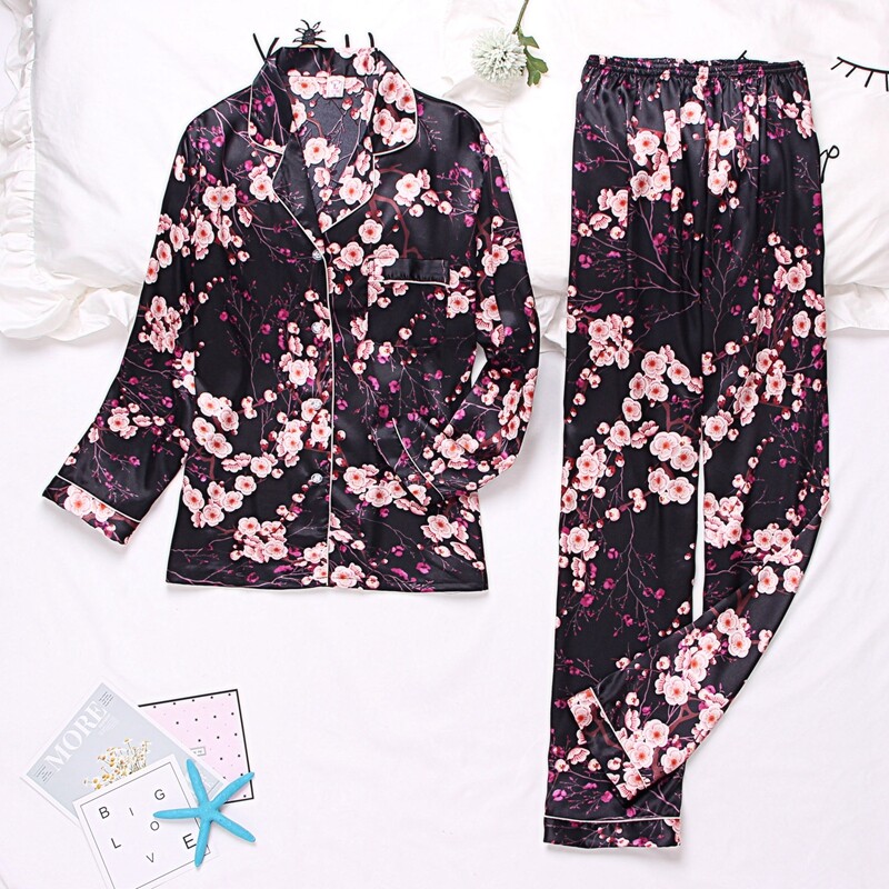 Women's Silk Satin Pyjamas Short Sleeve Button-Down Sleepwear Pjs Loungewear Set