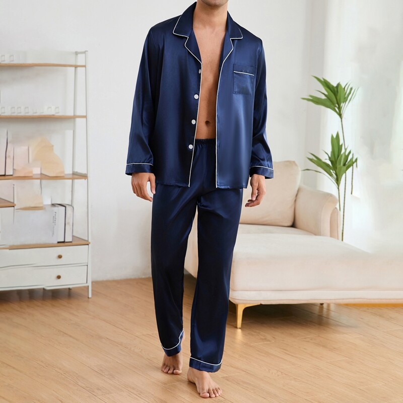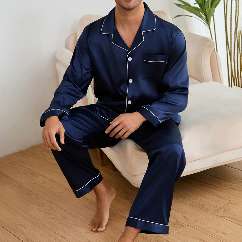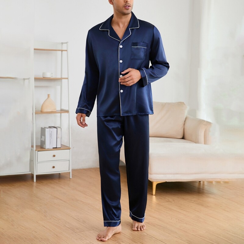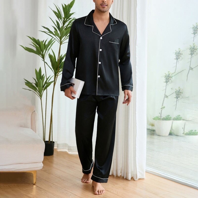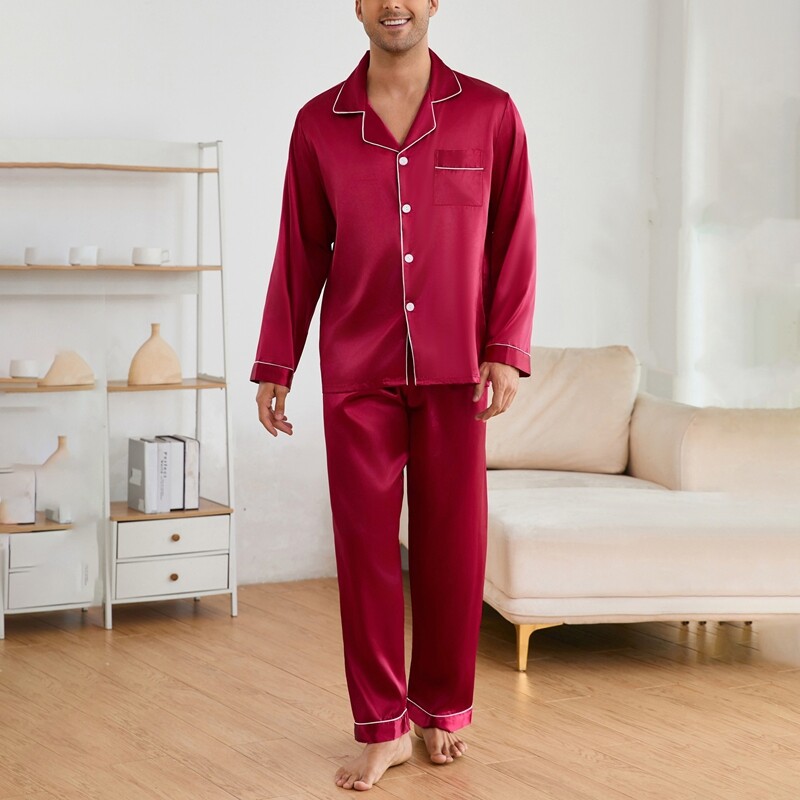 Men's Satin Pajamas Set Long Sleeve Button-Down Loungewear Two-piece Sleepwear