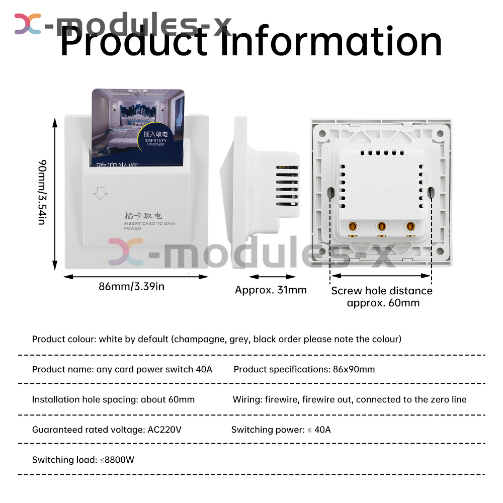 2. Power is supplied only when the card is inserted, which can effectively avoid power waste and security risks when no one is around, and also reduce the possibility of unauthorized people using electrical appliances.