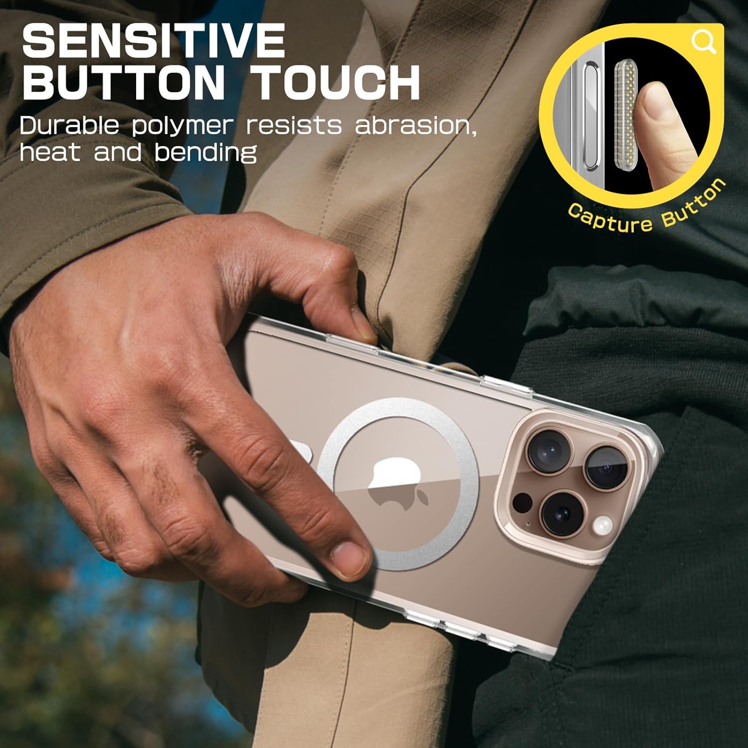 [Camera Control Capture Button]: Quick access design with camera control capture button, seamlessly integrated with iPhone's button functions.