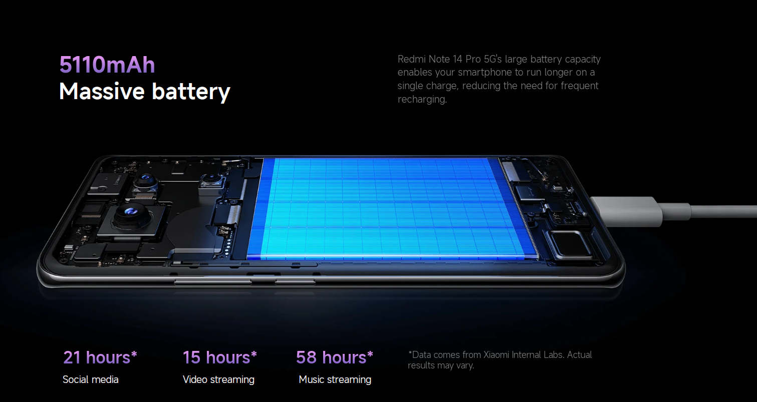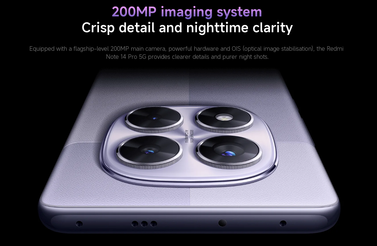 Das Redmi Note 14 Pro 5G ist modern, lebendig undoptimal komfortabel gestaltet. Sein symmetrisches Kameradekor unterstreicht ein Flaggschiff-ähnliches Aussehen und Gefühl. Angetrieben vom MediaTek Dimensity 7300-Ultra-Chipsatz, der auf 4-nm-Prozesstechnologie auf Flaggschiff-Niveau basiert, bietet der Chipsatz beschleunigte Spielerlebnisse und eine fantastische Leistung.
