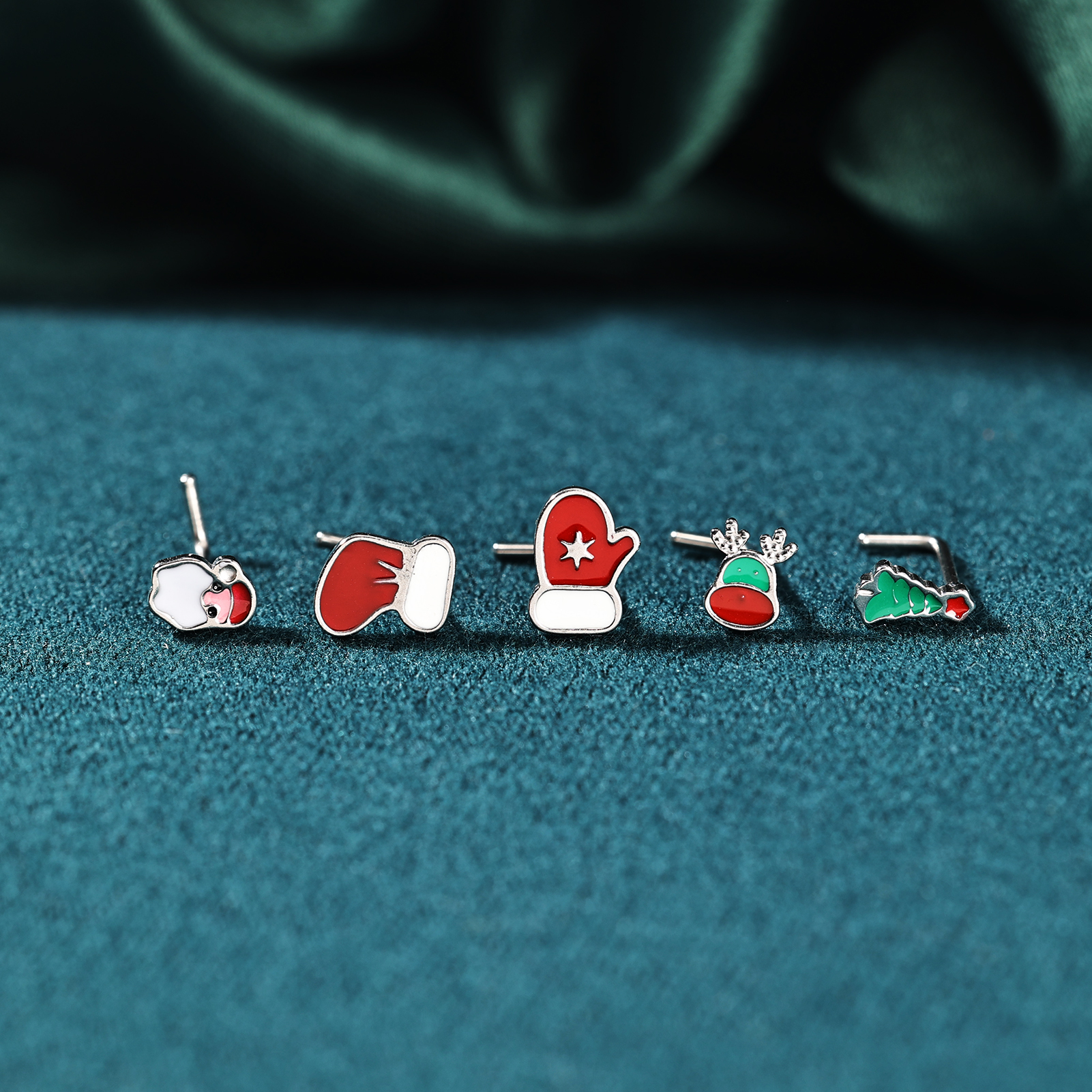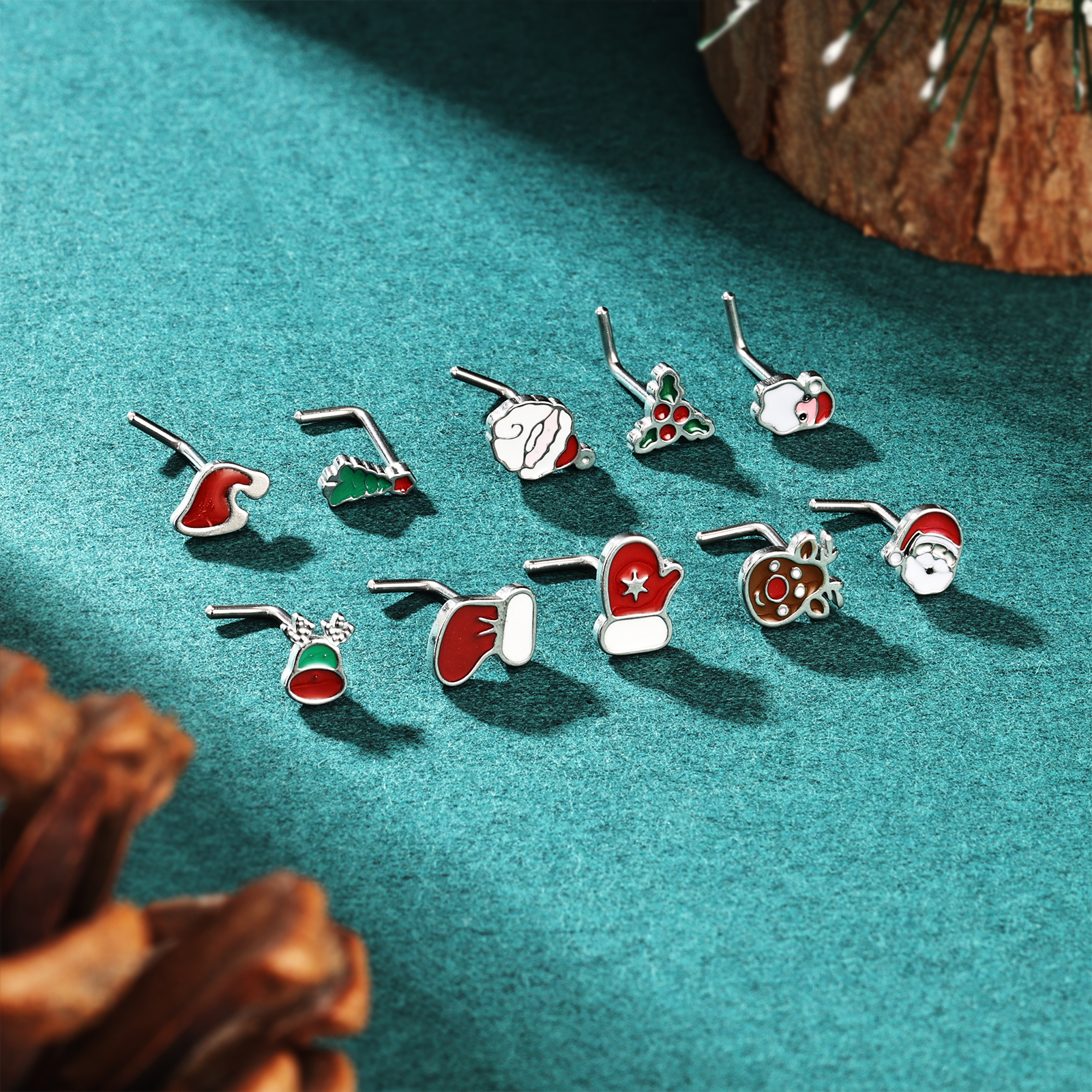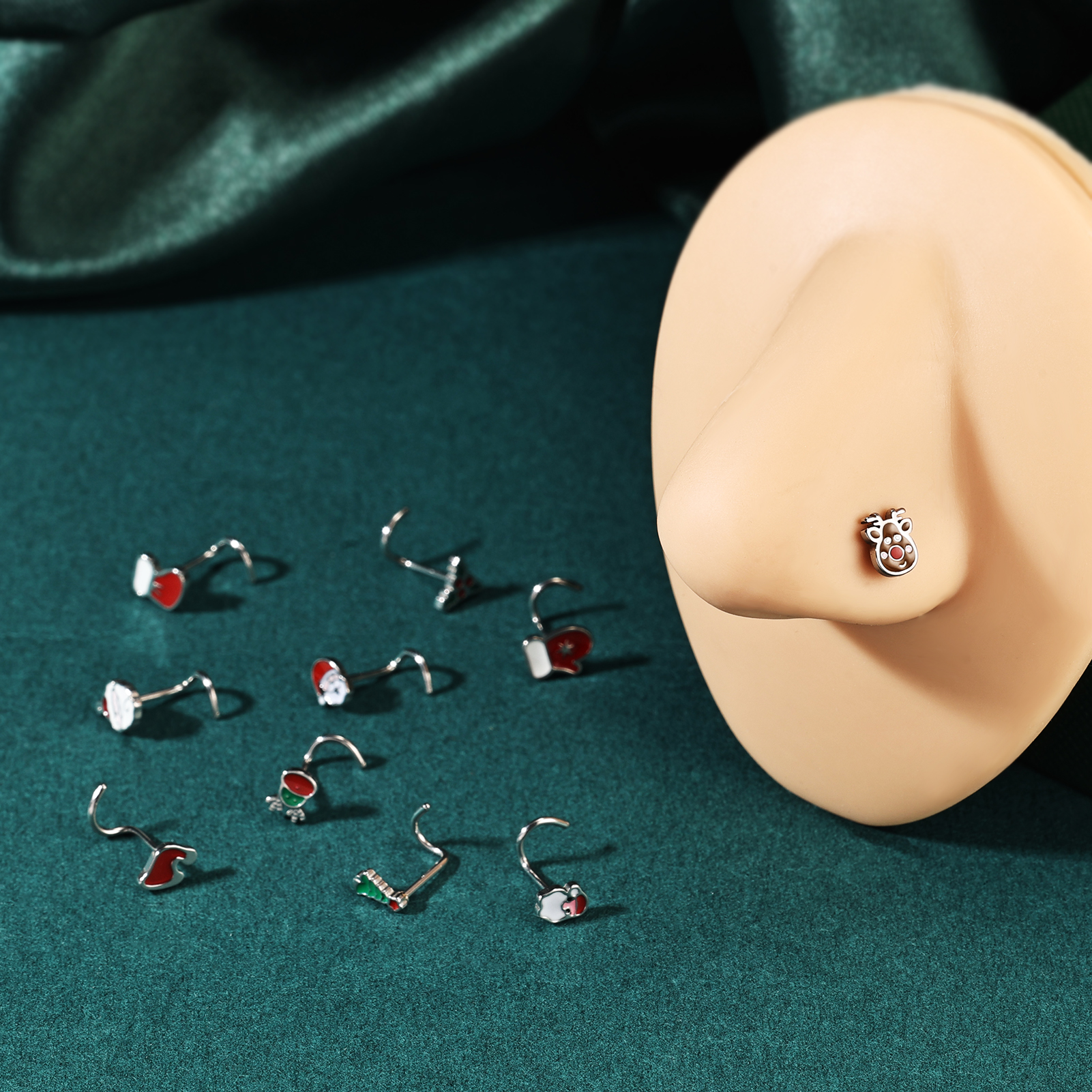 10Pcs Stainless Steel Christmas Nose Studs Santa Claus Nostril Piercing Jewelry