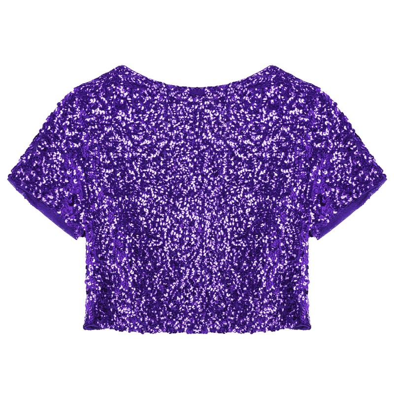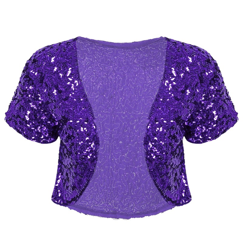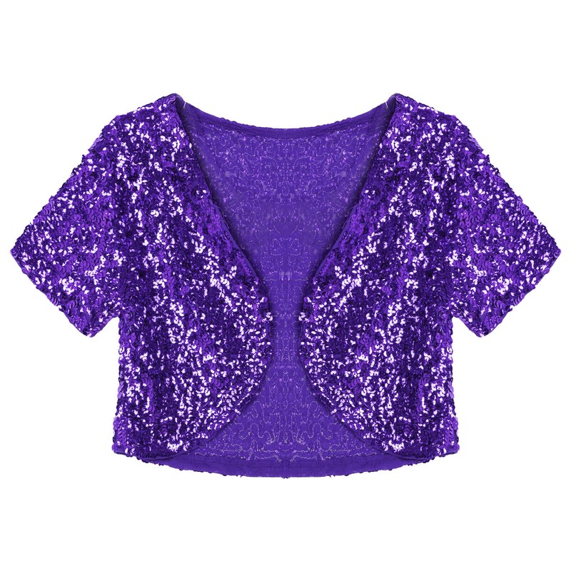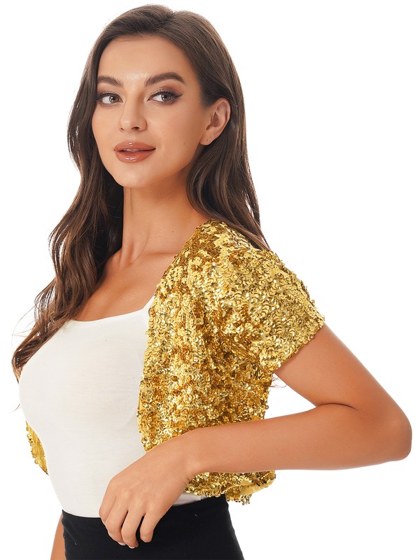 Women Shiny Sequin Cropped Jacket Coat Glitter Cardigan Outwear Stage Performance Costume.