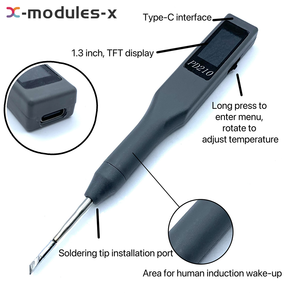 1. PD210 is an original soldering iron. It adopts internal heating mode, dual temperature sensors and extremely fast acceleration. It only takes a few seconds to reach the set temperature. It is a portable and easy-to-use soldering iron.