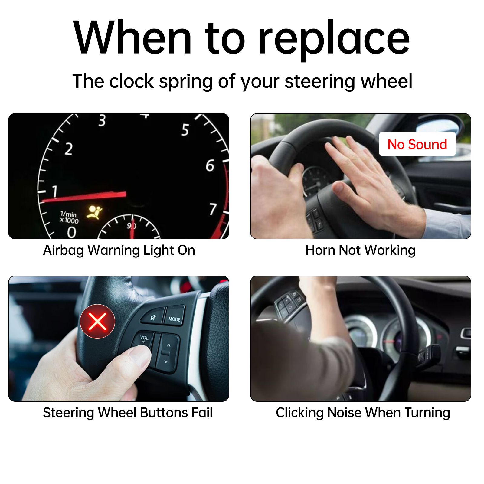 a) Direct-fit replacement electrically operated switch that replaces damaged OE units increasing road safety and restoring steering wheel function