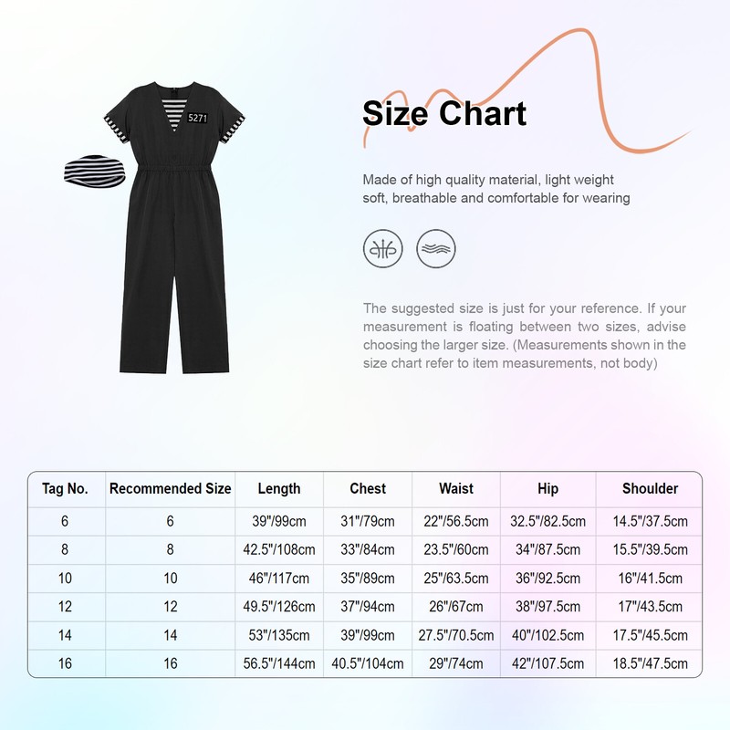 Suitable for Halloween cosplay party, prisoner cosplay, jailbird role play, themed party, dress up party, fancy dress party, etc.