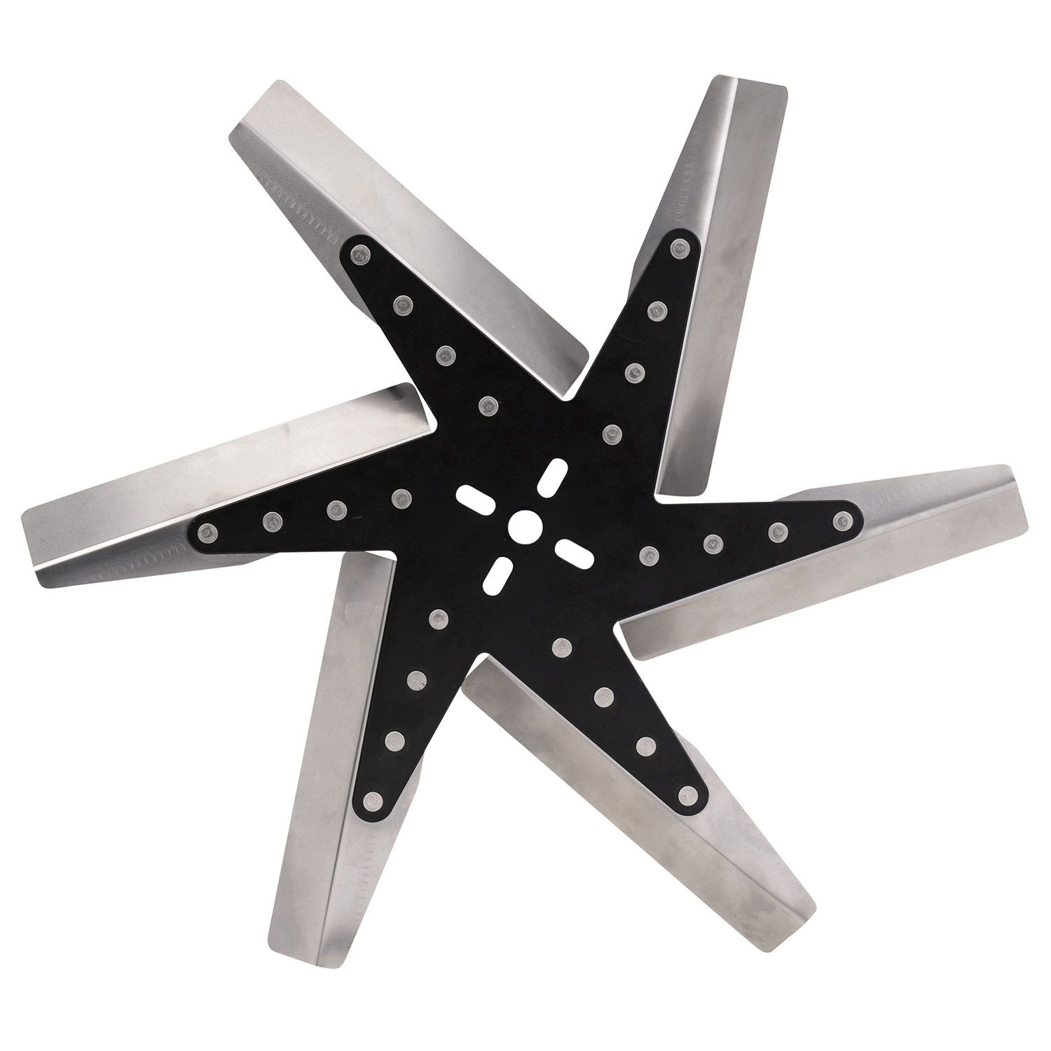 18" High Performance Stainless Steel Reverse Rotation Flex Fan, Black Hub Our 18" high performance, reverse rotation flex fan features 6 stainless steel blades and a black powder coated hub and is rated for engine speeds up to 8,000 rpm. A perfect for limited space applications. 18" High Performance Stainless Steel Reverse Rotation Flex Fan, Black Hub