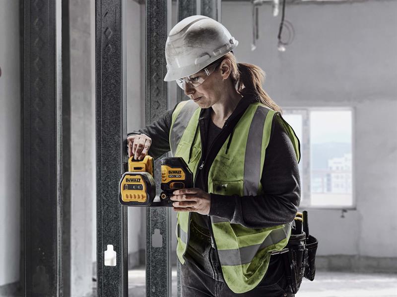 The DEWALT DCE088 Self-Levelling Cross Line Green Beam Laser is a multi-voltage XR power tool, compatible with both 12V and 18V Li-ion batteries. A green beam laser diode provides full brightness for visibility and extended working range. It has a variable blink sequence for manual mode and full-time pulse mode allows use with a detector. Fitted with a fine adjustment knob for precision and accuracy. There is also a locking pendulum to help prevent damage to internal components.
