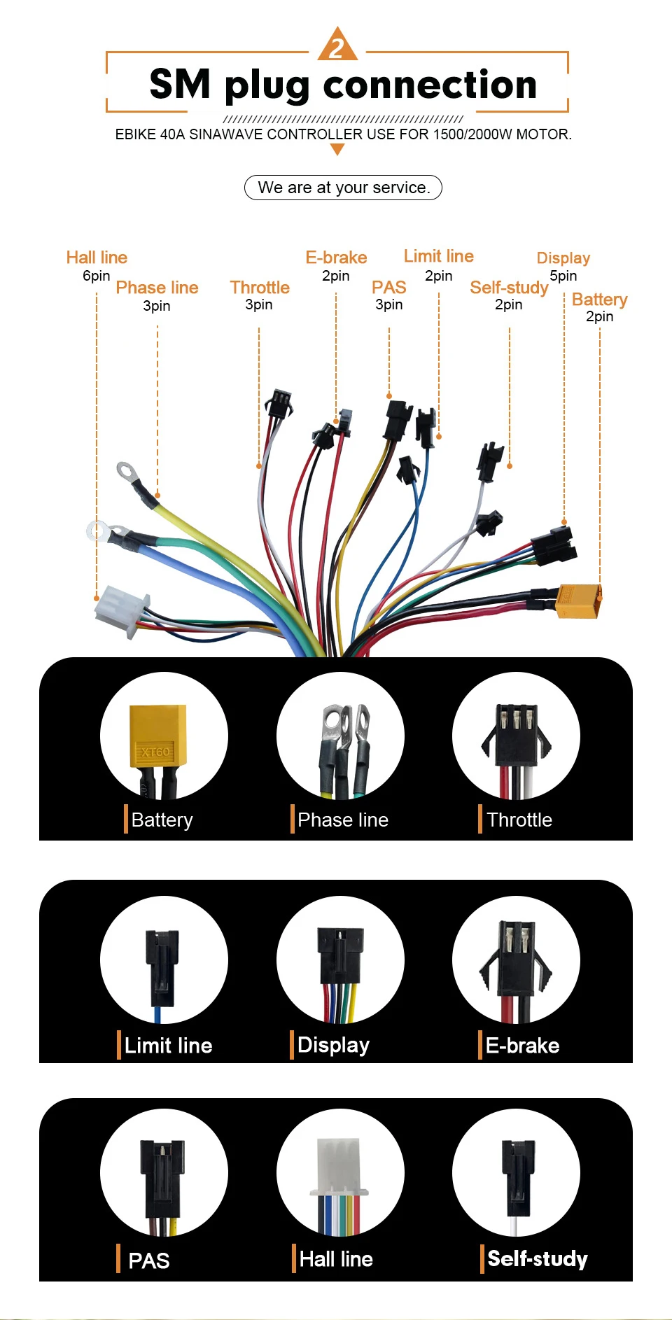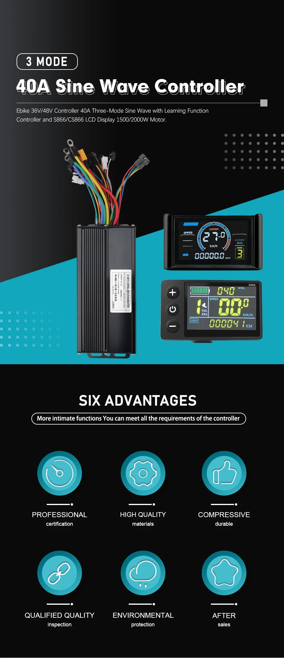 JN 40A Three-Mode Sine Wave Controller and 36V 48V GD01 S866 T8 S966 LCD Display Use for Electric Scooter 1500W 2000W Motor Conversion Part