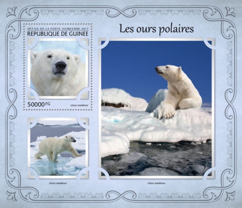 Country: Guinea, Year of Issue: 2017, Type: Stamp Souvenir Sheet, Topic: Polar Bears, Animals