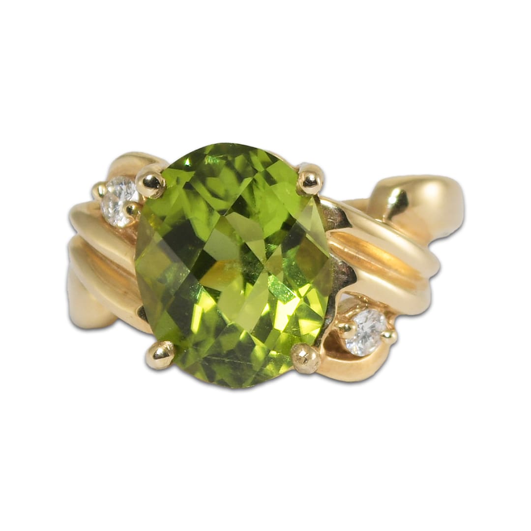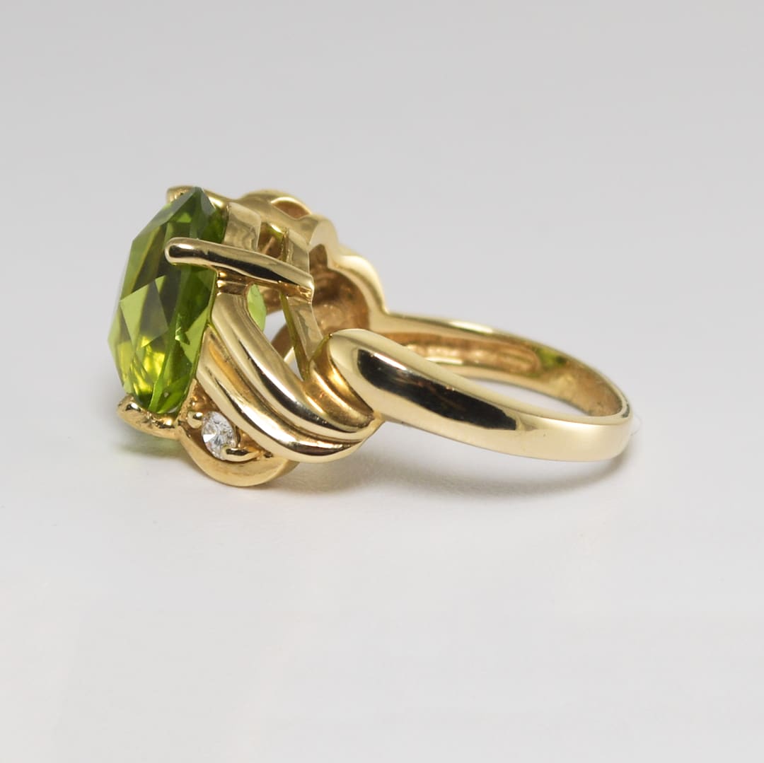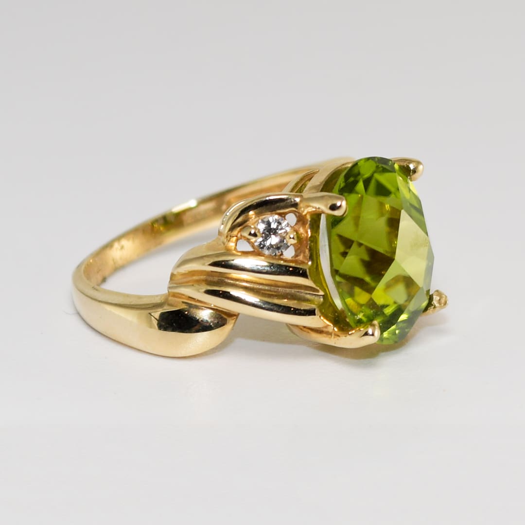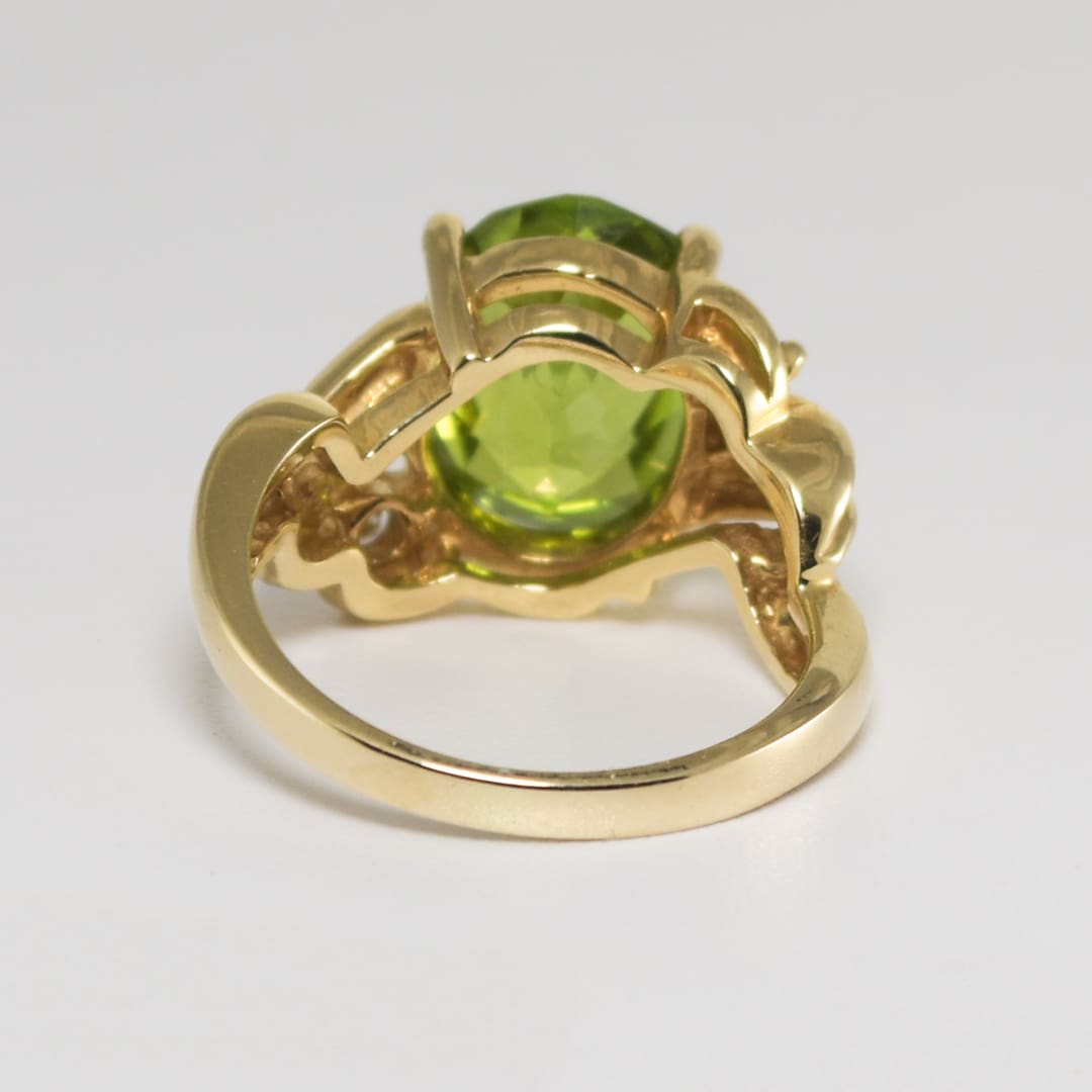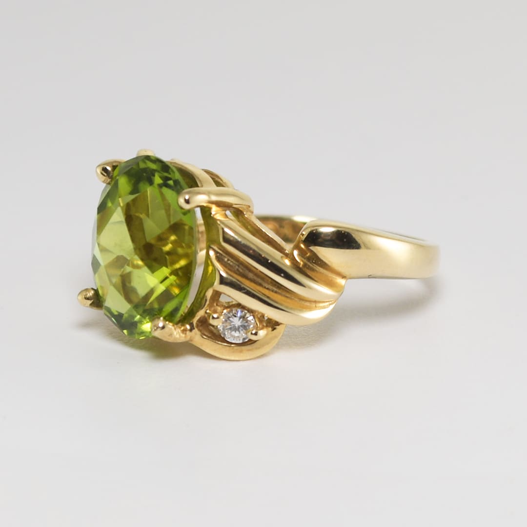 14K Yellow Gold Oval Peridot & Diamond Ring