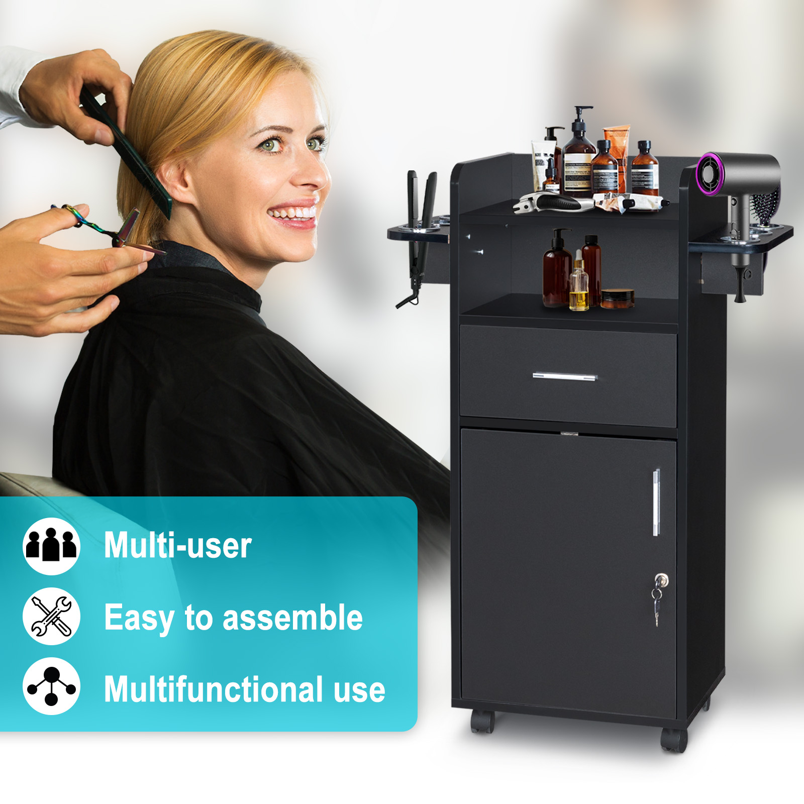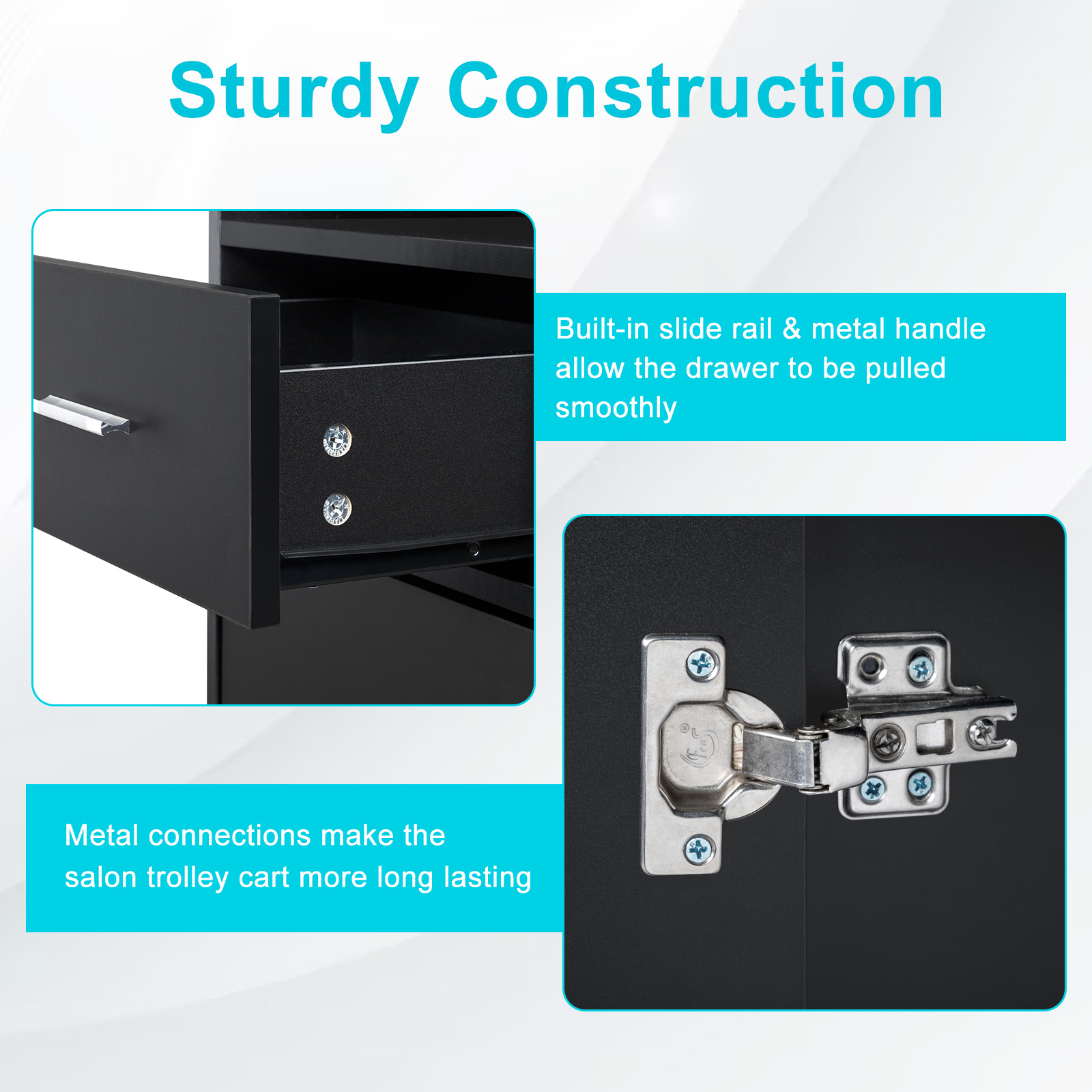 Salon Trolley Cart with Wheels / Drawer Stylist Cart Mobile Barber Station Black