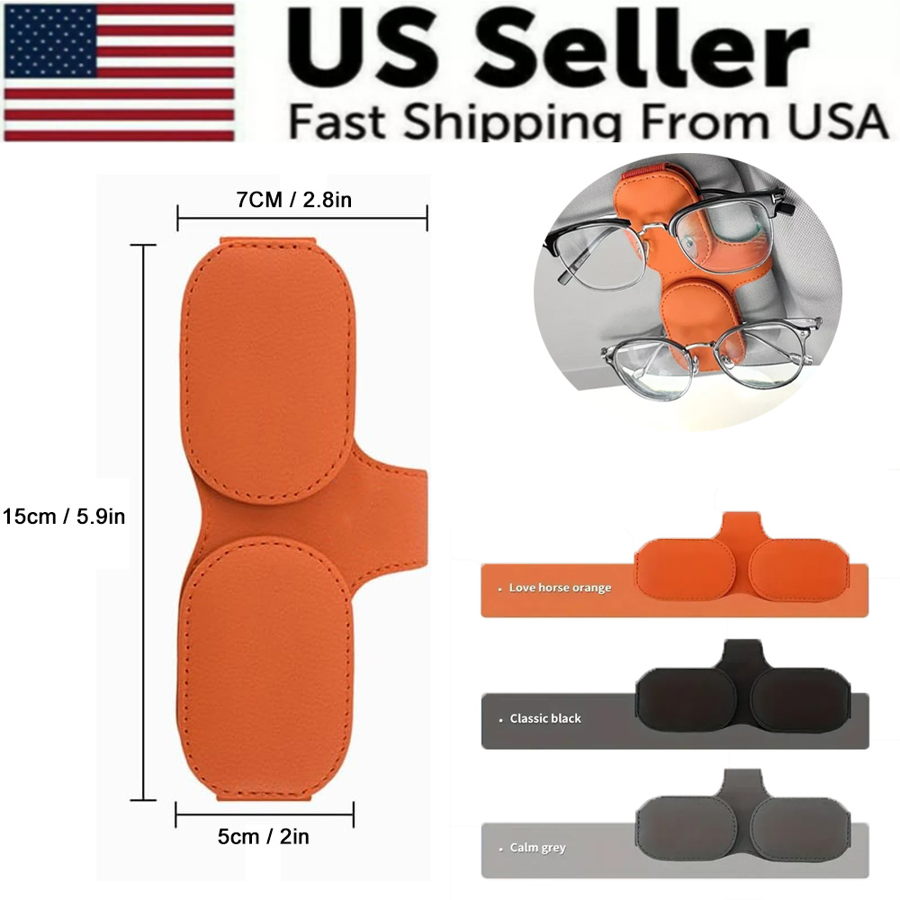 Sunglasses Holders for Car Sun Visor Magnetic Leather Glasses Eyeglass Hanger Clip for Car,