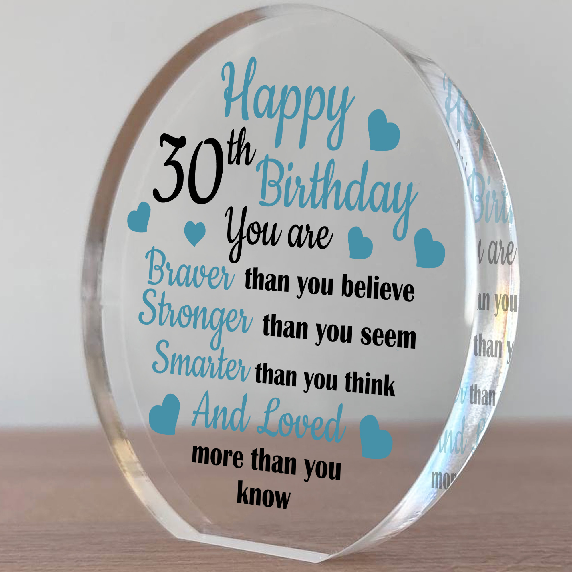 - This Inspirational Acrylic Plaque will be a lovely gift for a 30th Birthday. You are braver than you believe, stronger than you seem, smart than you think and loved more than you know. A special keepsake gift for your Son/Grandson/Nephew/Brother
