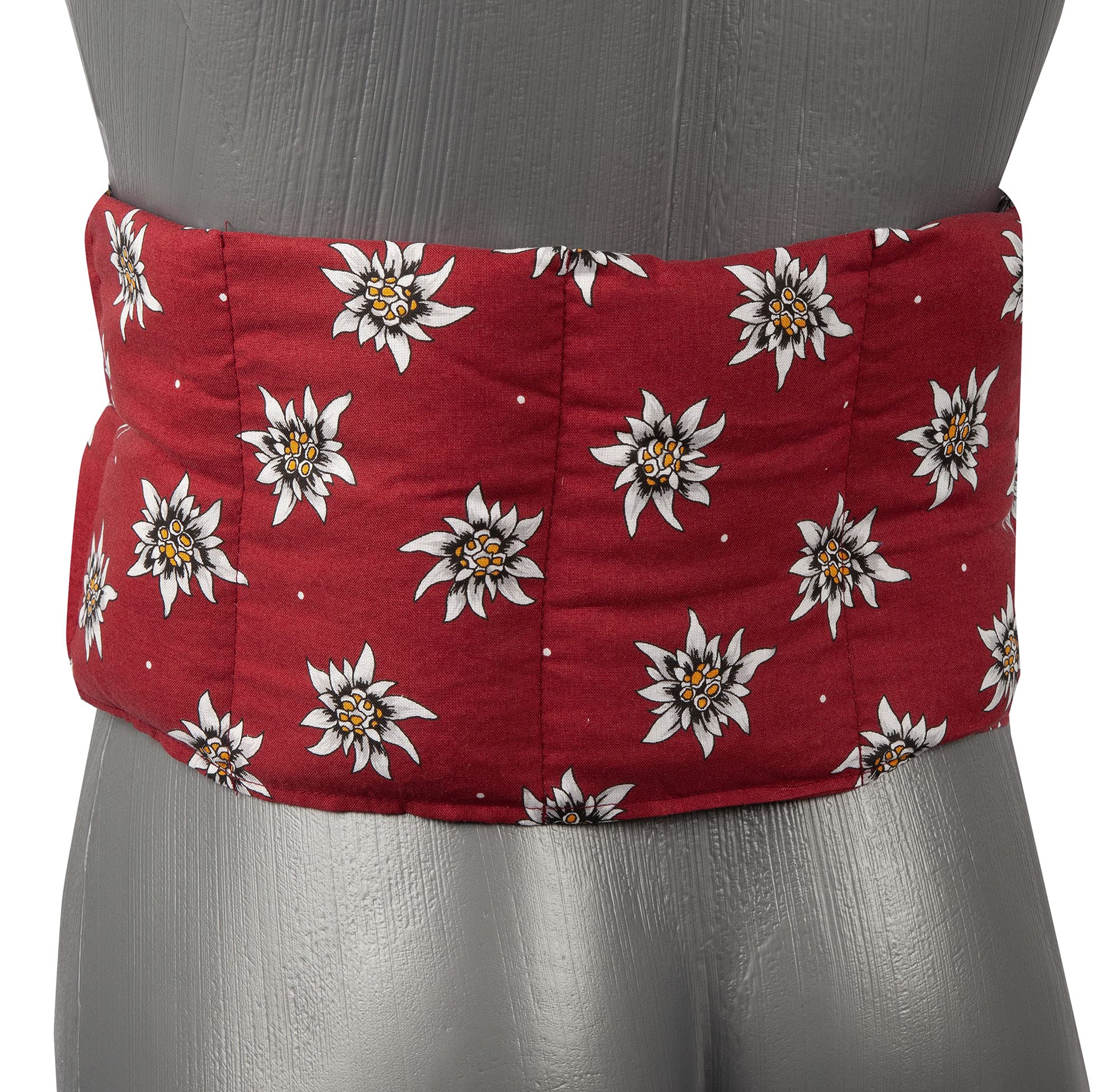 Cuscino con semi di lino - Cuscino termico per forno, microonde e frigorifero. Caldo e freddo (65x15cm, Fiore d´edelweiss, 7 compartimenti con banda da legare)