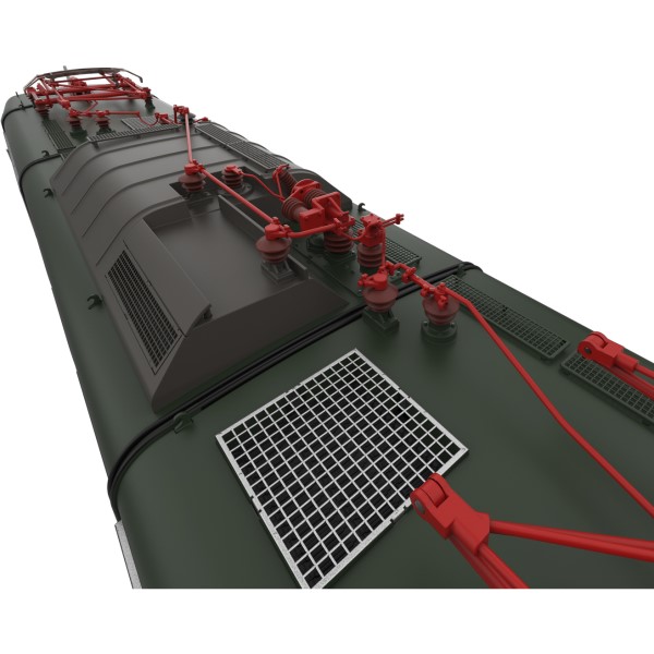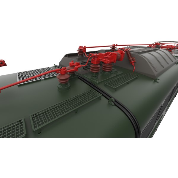Die Dachstromabnehmer können im Digitalbetrieb motorisch gehoben und gesenkt werden, was die Detailtreue weiter erhöht. Die LED-Beleuchtung umfasst weiße und rote Spitzensignale, die fahrtrichtungsabhängig wechseln, sowie schaltbare Maschinenraum- und Führerstandsbeleuchtungen. Zudem verfügt das Modell über Zugannäherungslampen, die auf Fahrtrichtungsänderungen reagieren. Die Führerstandstüren lassen sich öffnen, und die detailreiche Inneneinrichtung inklusive Lokführerfigur rundet das Modell perfekt ab.