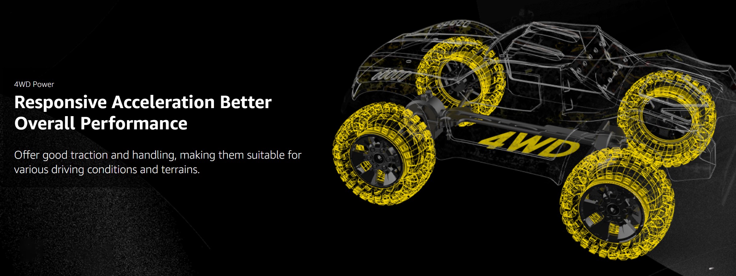 【All-terrain Racing】Independent suspension design is introduced to both front and rear suspension on this high-speed RC car. These shock absorbers help keep the car incredibly stable. Working together with anti-skid rubber tires, an aggressive tread pattern will help you tackle any terrain.