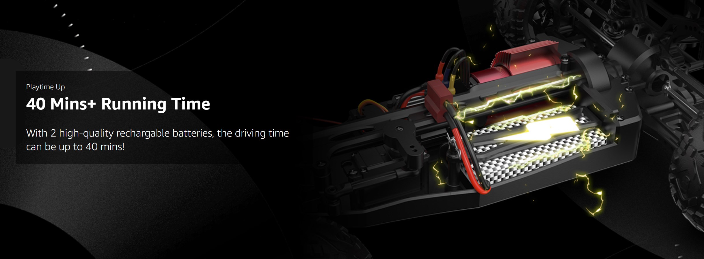 【2 BATTERIES & 40 Min+ Play Time】The RC car is equipped with two 1200mAh high-quality rechargeable batteries, you can enjoy the fun of driving for about 40+ mins a time (20+ min for each battery). With just one drive you will see why our short course trucks performance to a whole new level.