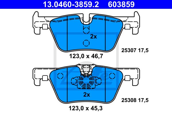 Bremsbelagsatz, Scheibenbremse EAN 3 : 4006633376495 Herstellnummer 3 : 13.0460-3859.2 Dicke/Stärke [mm] : 17,5 Prüfzeichen : E1 90R-02A0498/0492 Höhe 1 [mm] : 45,3 Höhe 2 [mm] : 46,7 Verschleißwarnkontakt : für Verschleißwarnanzeiger vorbereitet,exkl. Verschleißwarnkontakt Bremssystem : Bosch Breite 1 [mm] : 123,0 Breite 2 [mm] : 123,0 MAPP-Code vorhanden : MAPP-Code vorhanden