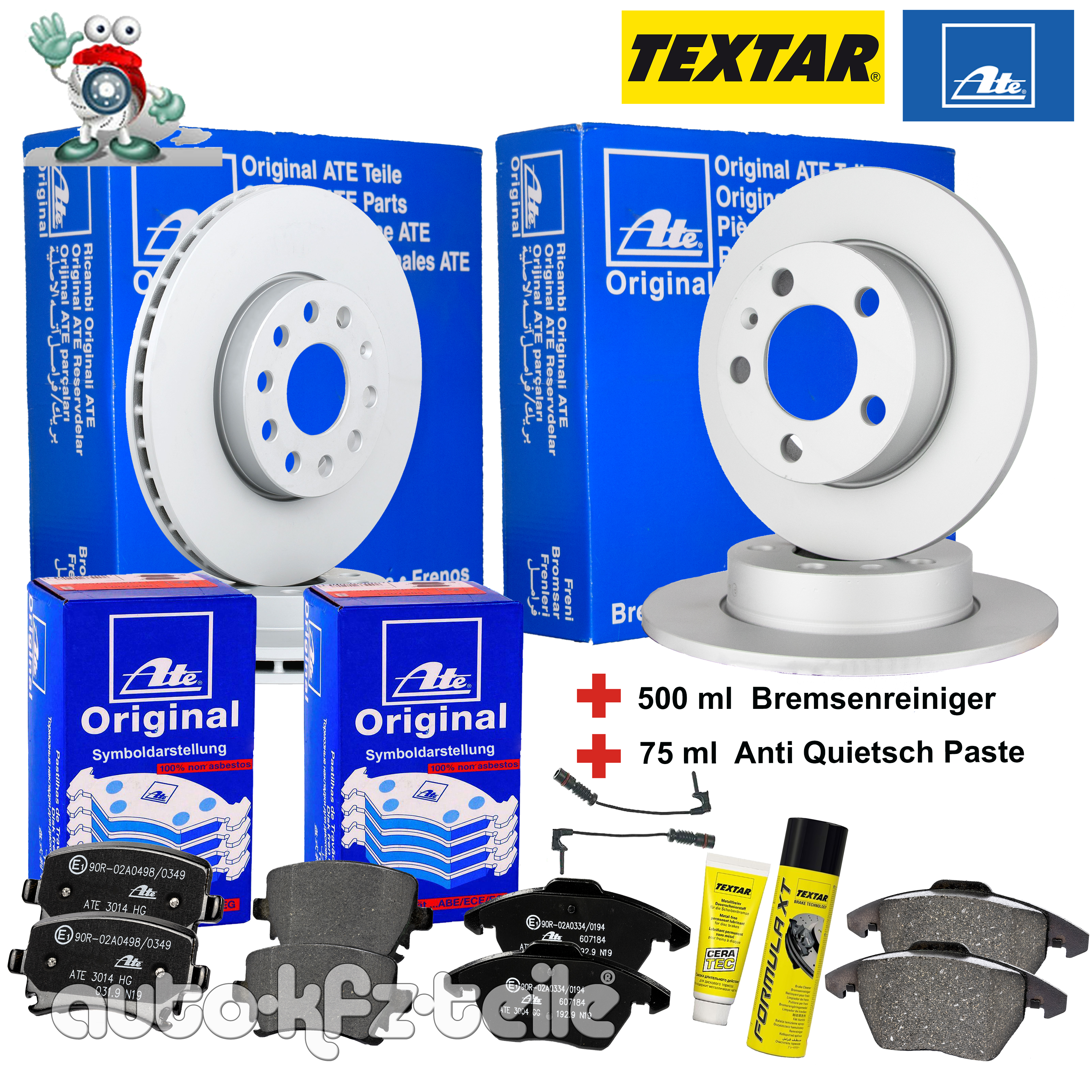 Im Lieferumfang enthalten : Bremsscheibe,Bremsbelag Lieferumfang : 2x Bremsscheibe;2x Bremsscheibe;1x Bremsbelagsatz, Scheibenbremse;1x Bremsbelagsatz, Scheibenbremse;1x Warnkontakt, Bremsbelagverschleiß;1x Warnkontakt, Bremsbelagverschleiß;1x Montagepaste;1x Bremsen/Kupplungs-Reiniger Einbauposition : Vorne|Hinten