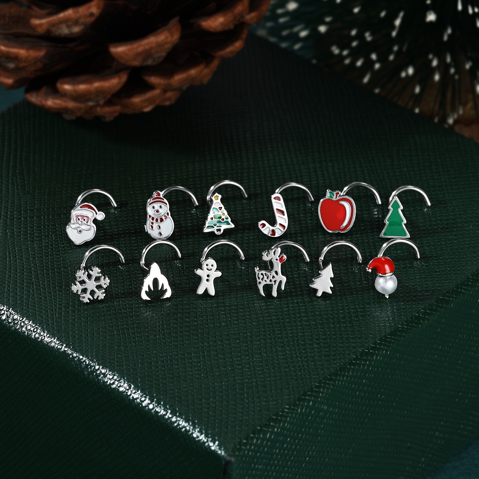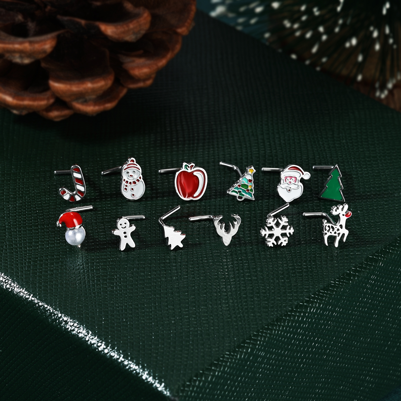 12Pcs/Set Stainless Steel Christmas Nose Stud L/S Shape Nostril Piercing Jewelry
