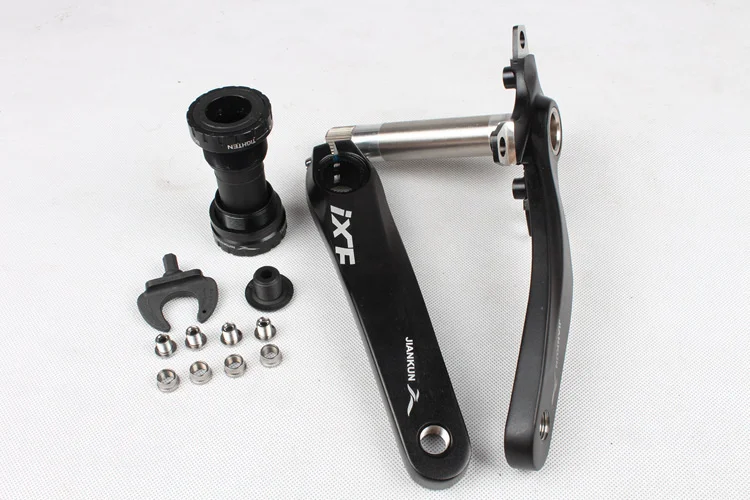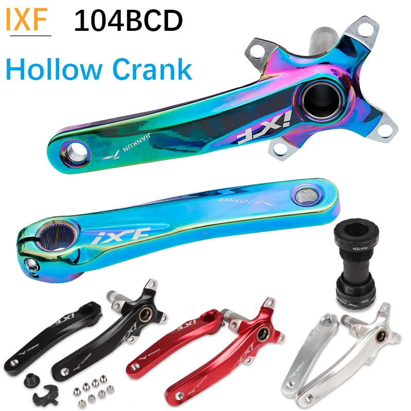 Model: IXF 104BCD Hollowtech Crank Crank length: 170mm Material: aluminum alloy 6065 Spindle axis length 122mm, diameter 24mm Specifications: BCD 104mm, 4 arms Weight: A pair crank weight 675g Bottom Bracket (BB) 105g Color: black, red, golden, silver, rainbow color Works with MTB, Road Bike BB Bottom Bracket: BSA 68-73mm cups-BC-1.37*24/68mm Chain line:48.5mm Compatibility: if your frame bottom bracket width 68-73mm, it will work with your bike.