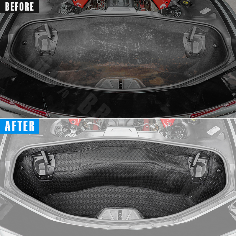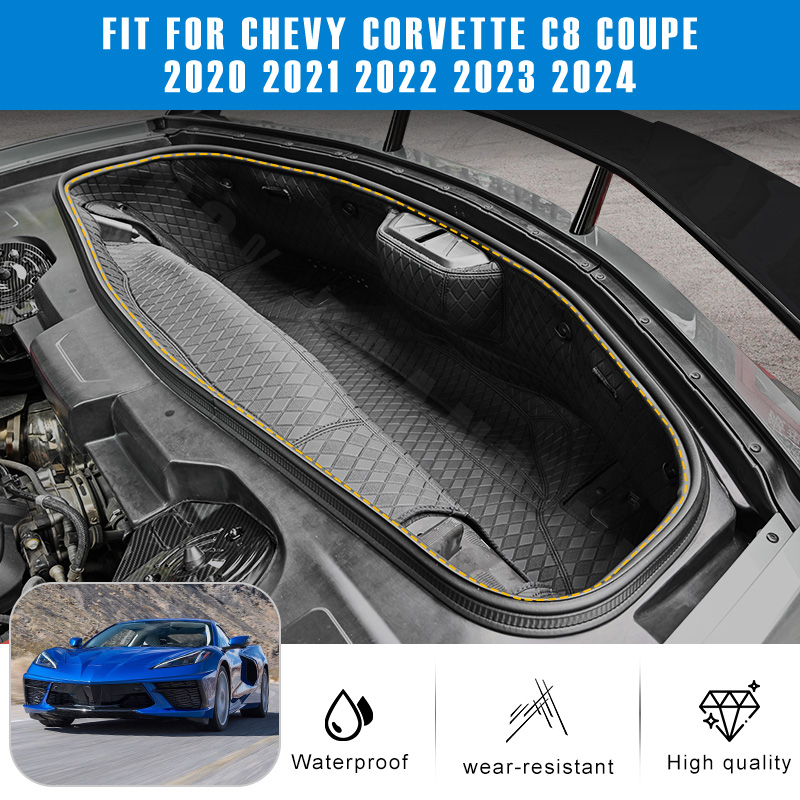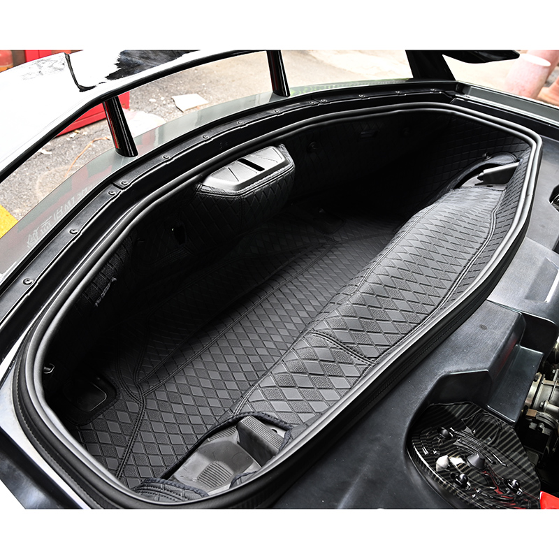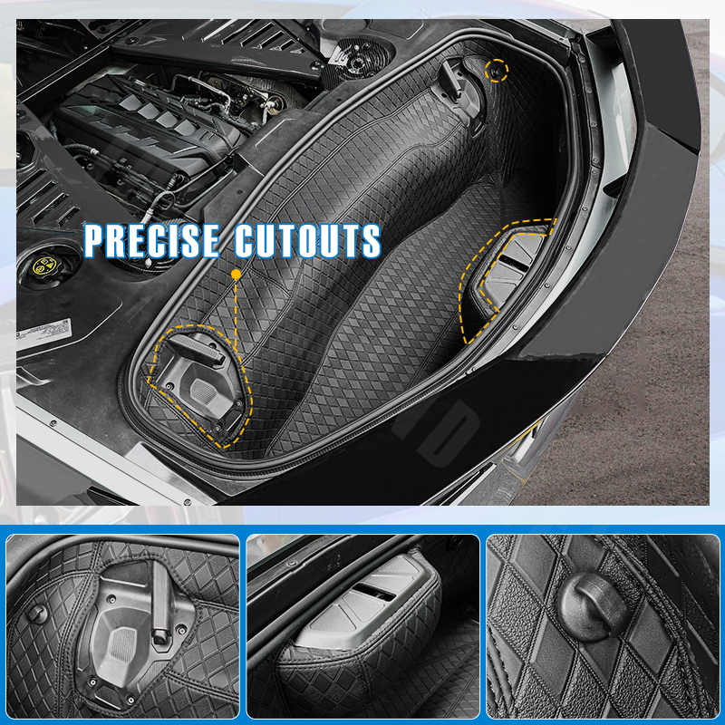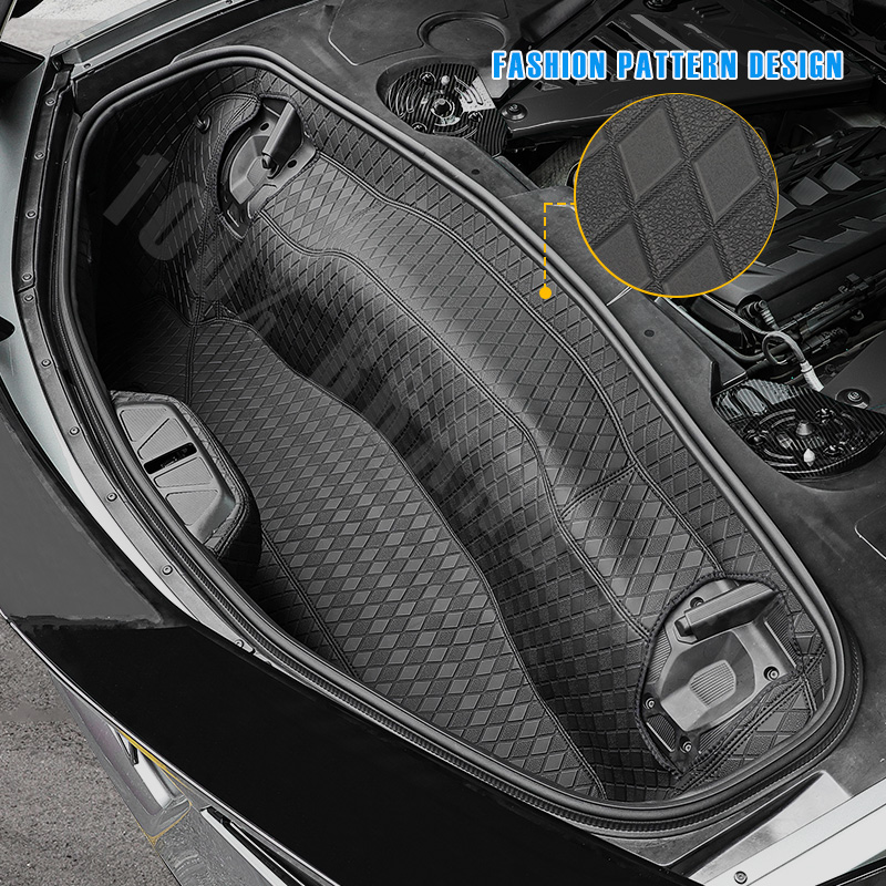The rear trunk mats for Corvette save you time vacuuming the C8 Highland and dry quickly after rinsing. Reinforced back bone grip nicely and fit the car snugly, so there's no need to worry about sliding when your car turn sharply,easy to clean,the unique superb craftwork and out-looking liner design with superb skills. This trunk mat is easy to decontaminate to clean and small dust can be wiped with towel, while clay can be washed with a high water gun.