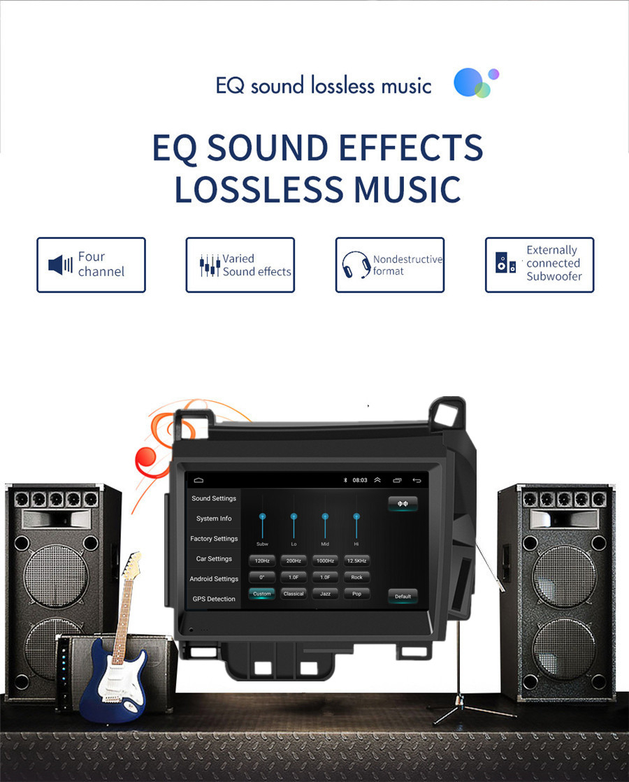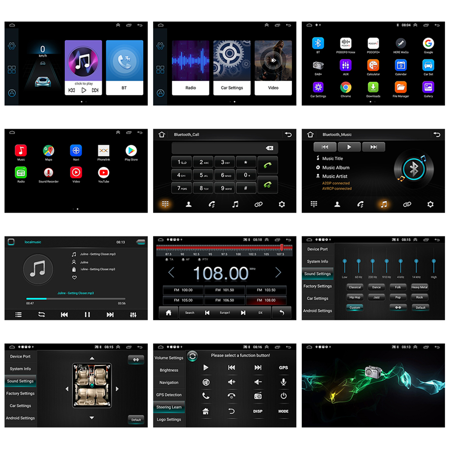 - WiFi/Hotspot/Bluetooth: Yes - Brightness level adjustable: Yes - Wallpaper: Wallpapers/Live Wallpapers/Gallery - Sound: Key Tone & Volume - Storage: Display Internal Storage/Nand Flash/Connected Device Storage - Apps: Running Apps display/force stop/uninstall - Security: Yes - Accounts: Yes - Languages and Input: more than 70 Languages and choose input method - Backup and Reset: Yes - Date and Time: Setting Date&Time by yourself or choose GPS/network-provided time - Accessibility: Yes - GPS: Yes, GPS application options/monitoring/sound mode/mixing ratio - Driving safety: Watching Video, Reversing X-mirror/Volume, Reversing Trajectory/radar Display, Rear view ruler - Amplifier: Rock/Pop/Jazz/Classic/Flat/Voice/Custom - Steering Wheel Control: Yes - About Device: Display Parameter Info. |