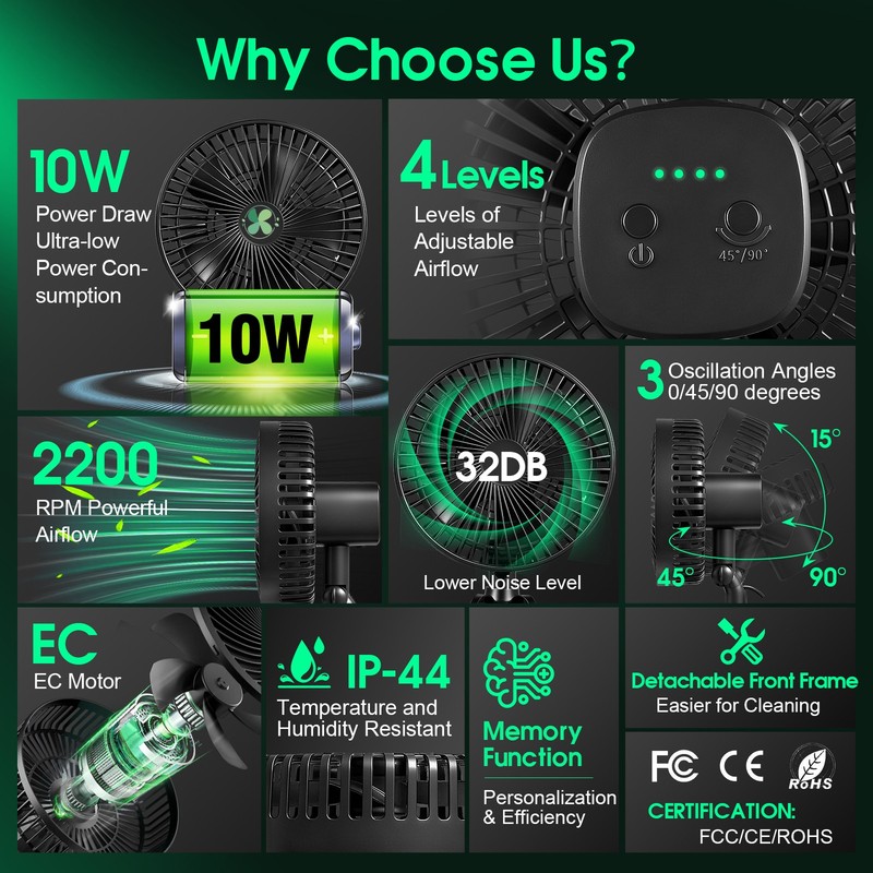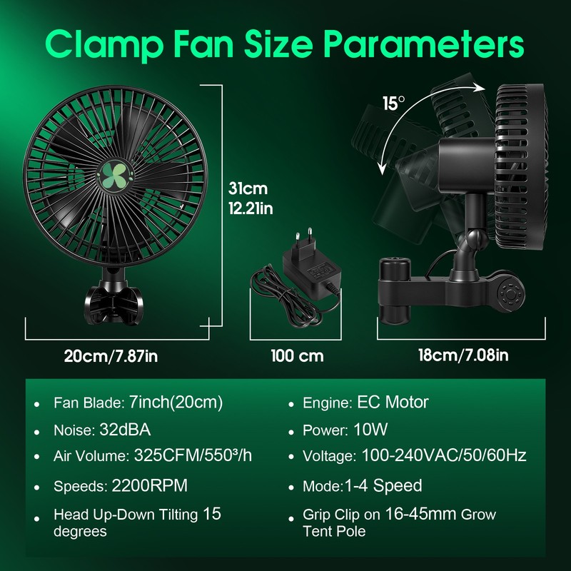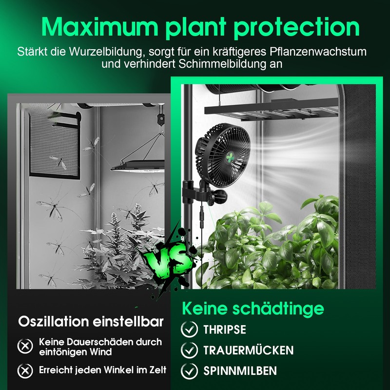 7''Clip Ventilator EC Motor Clipventilator oszillierend Growbox Growzelt Lüfter