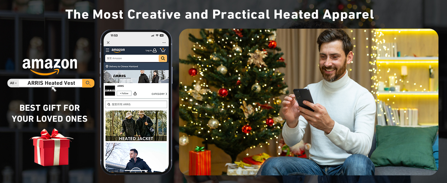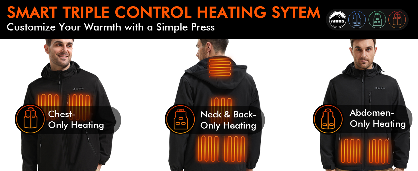 β πππ-ππ₯ππ ππ‘πππ£ππ‘πππ‘π§ ππππ§ππ‘π & π± π§ππ π£ππ₯ππ§π¨π₯π ππ’π‘π§π₯π’π - ARRIS smart heated Jacket for men was designed to have carbon fiber heating elements generate heat for chest, abdomen, back, waist and neck. The selectable LED controller allow users to control heating zones respectively and choose from 5 heat settings, delivering ideal heat for any situation.