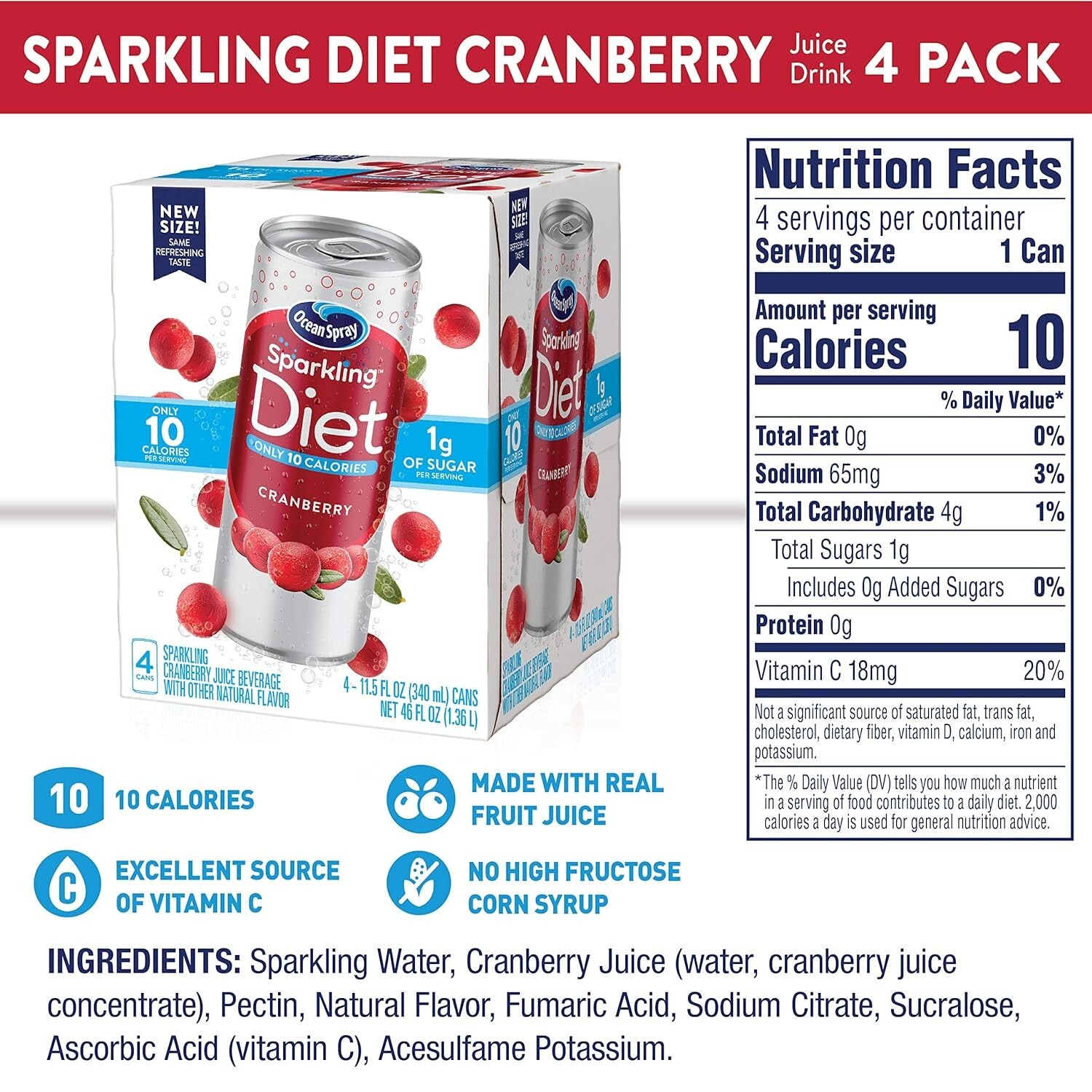 Indulge in the delightful union of real cranberry juice and effervescent water with our Sparkling Diet Cranberry Juice Drink. With only 10 calories per can, it offers a refreshing alternative to traditional sugary beverages, making it the ideal companion for any occasion. Whether you're hosting a gathering, celebrating, or simply relaxing at home, this drink is guaranteed to please.
