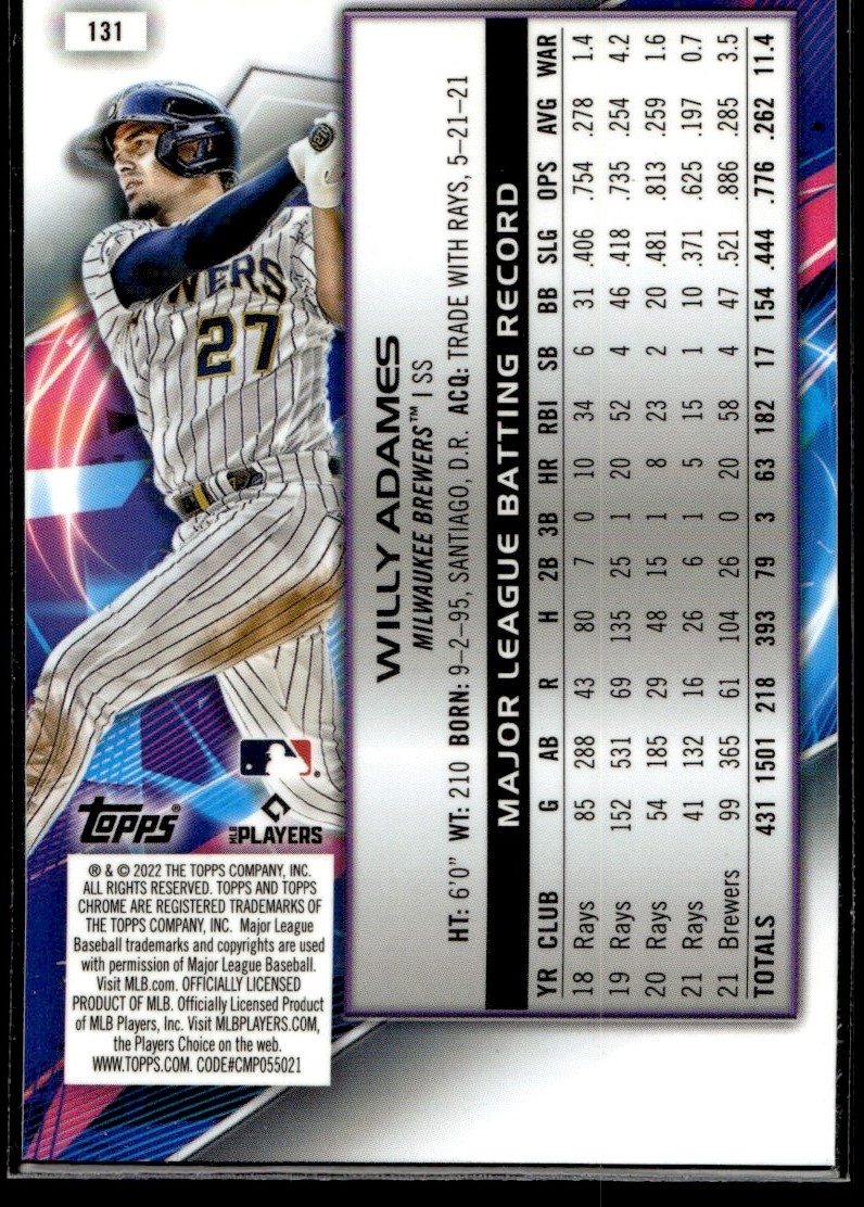 | 2022 Topps Chrome Cosmic Willy Adames Tampa Bay Rays #131 |
