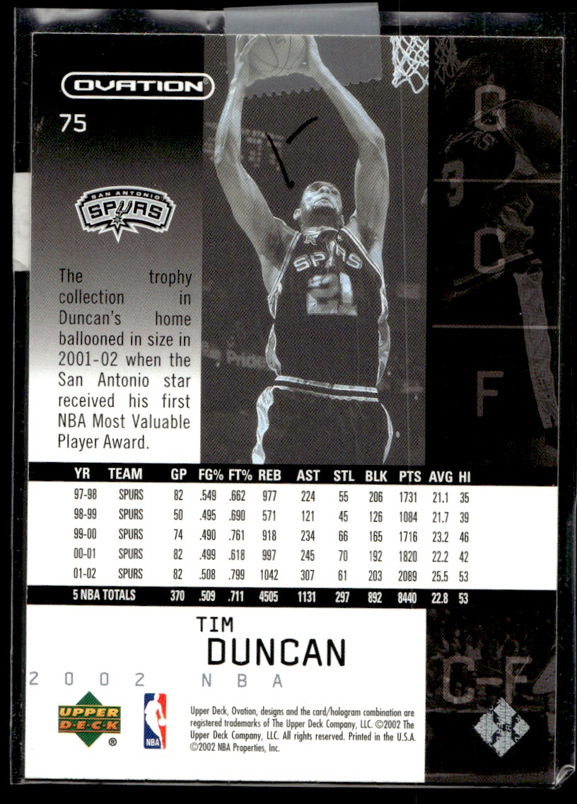 | 2002-03 Upper Deck Ovation Tim Duncan San Antonio Spurs #75 |