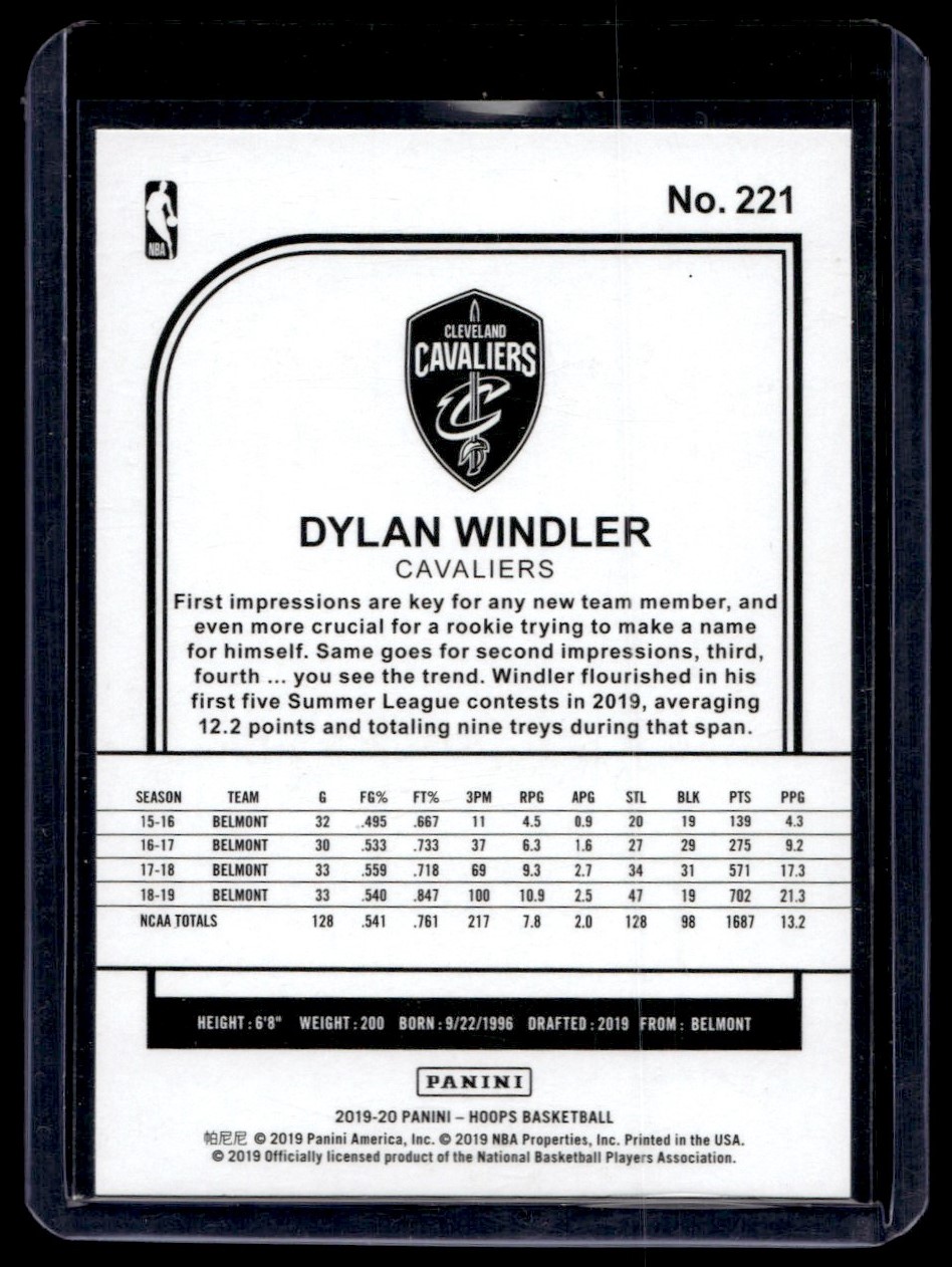 | 2019-20 Hoops Dylan Windler RC Cleveland Cavaliers #221 |