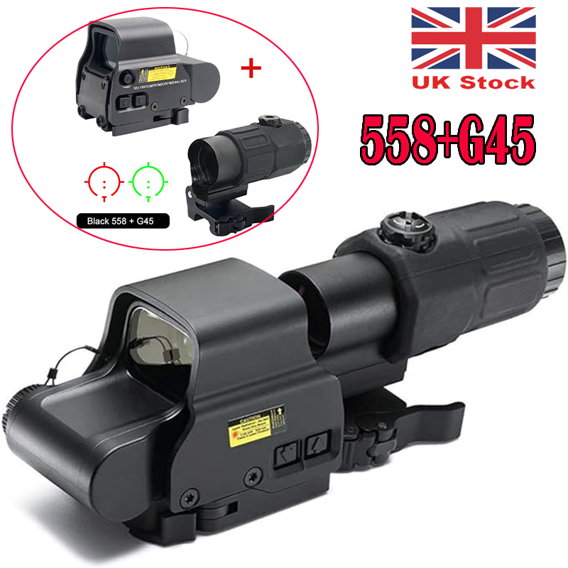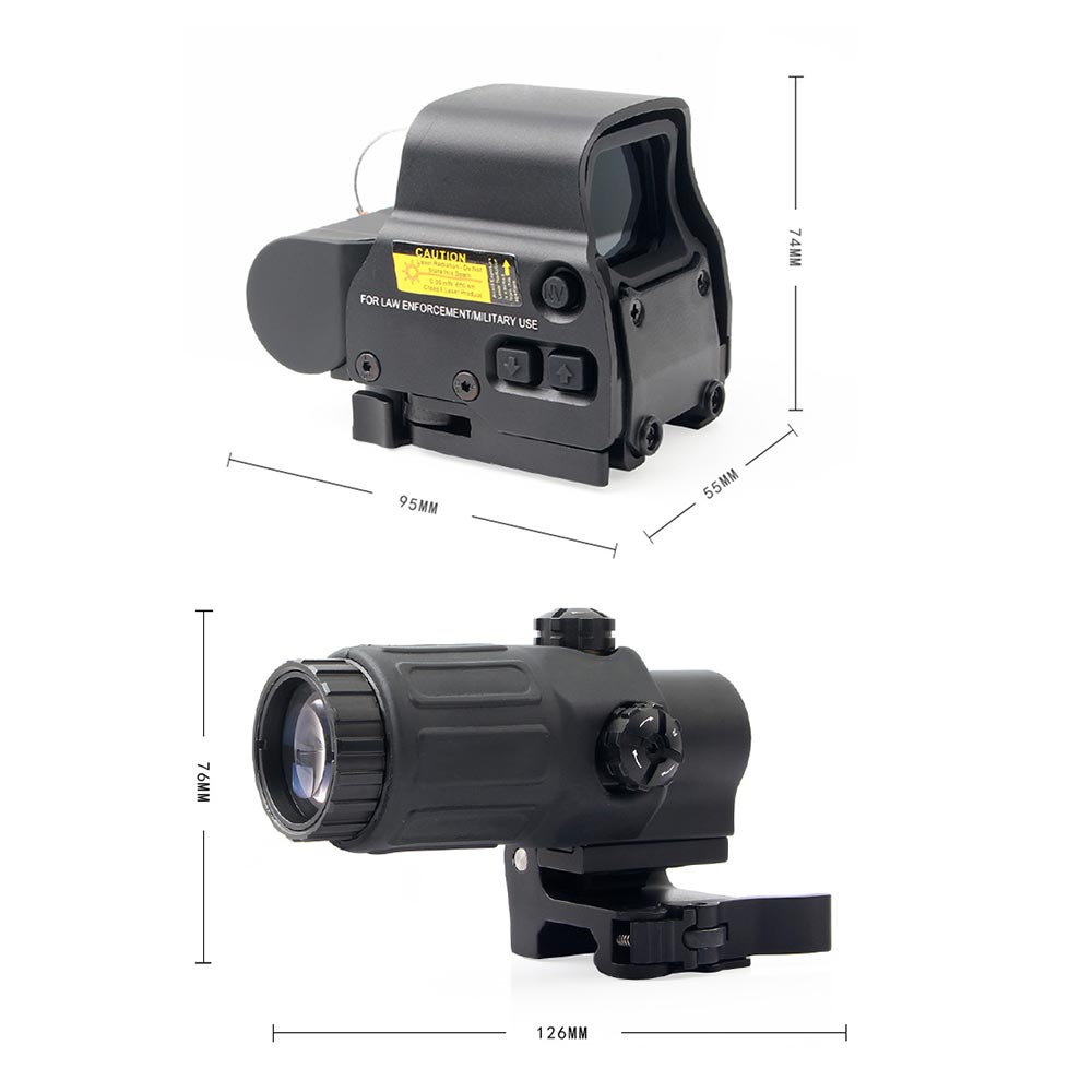 Our HHS holographic hybrid mirror exps3-2 hologram is equipped with a new G45 amplifier, which can be magnified by 5 times and is completely coated with anodized layer. Includes brackets mounted on Picatinny/ rails. Quick release without any special tools. Quickly connect and release the installation system manually. Support wind resistance and elevation adjustment. With the built-in G45 magnifying glass, you can quickly switch from short range target to medium range target, and switch to side mounting. Light and light. This is the best choice for outdoor activities. Great for hunting and tactical games. cosplay. The best hunting gift. With such a wide range of products to meet your different needs.