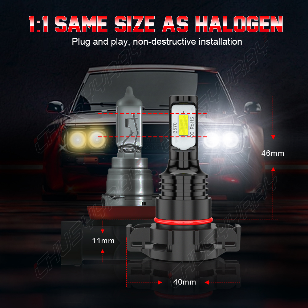 1:1 mini size as original halogen bulbs for higher compatibility and simple installation.