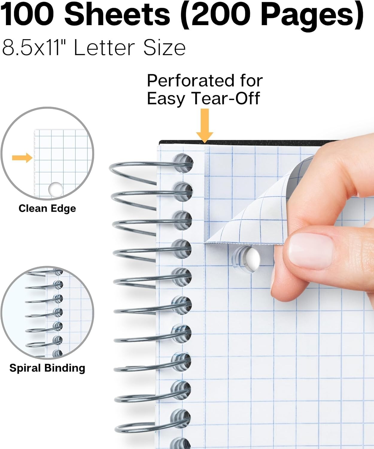Perforated pages for clean edge tear-out, allowing you to neatly remove sheets.