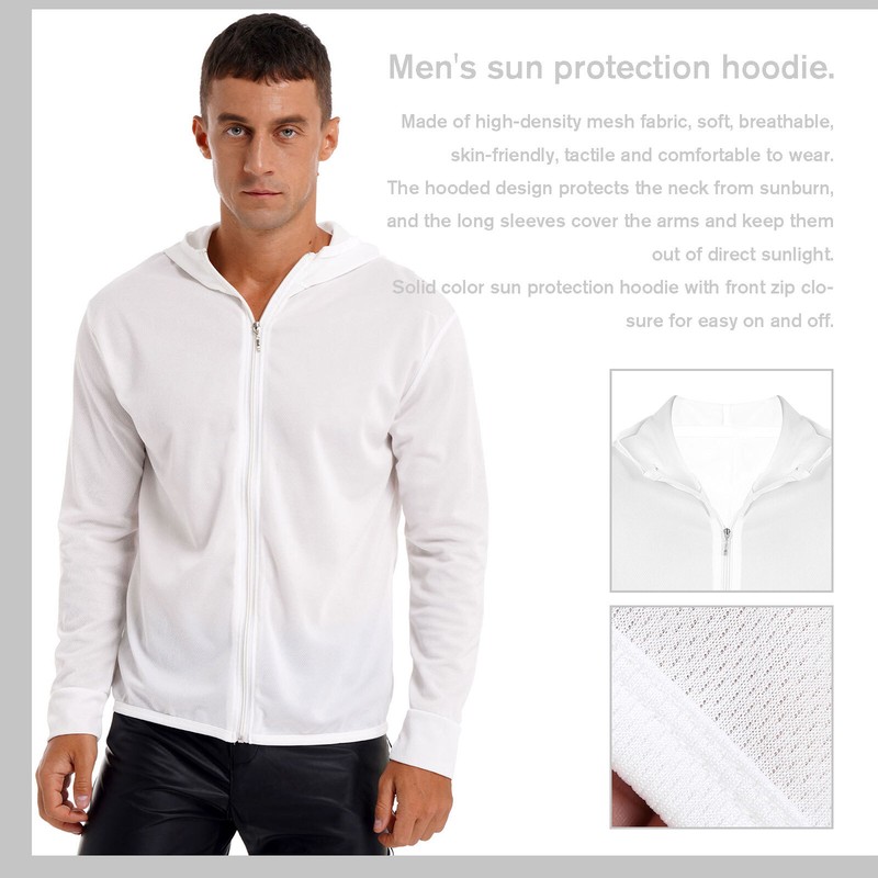 Mens Sun Protection Hooded Jacket Outdoor Travel Hiking Fishing Climbing Long Sleeve Shirt Zipper Hoodie.