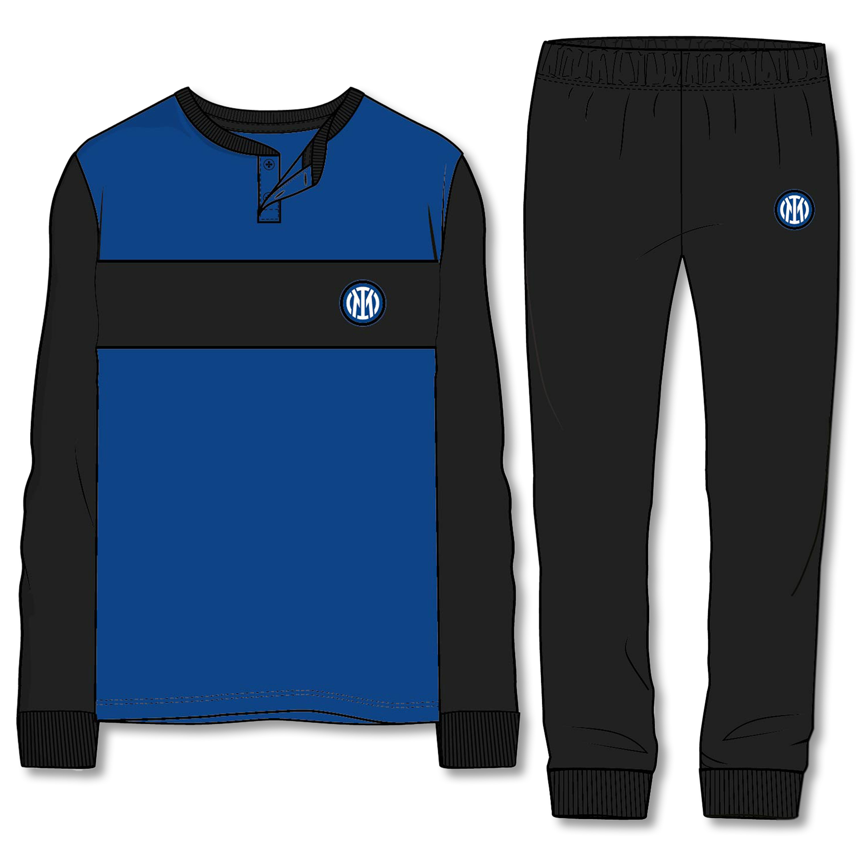 The Family Inter 1145 pajamas It is ideal for families of real Nerazzurri fans! Made in 100% cotton, offers comfort and warmth for evenings at home. The design has a shirt a Serafino with buttons: the blue bust is crossed by a black band on the chest, with the Inter logo positioned on the heart. The trousers is black, in perfect Nerazzurri style.