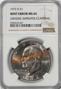You are bidding on a 1972 D NGC MS65 Improper Cladding Obverse Ike Dollar Mint Error Unique And Rare. Errors are becoming very rare as the mint has put in systems in 2002 to virtually stop all majors errors from getting out of the mint. Please check my very positive feedback. Shipping and handling $2.95. Please check out my other ERROR COIN Auctions this week.
