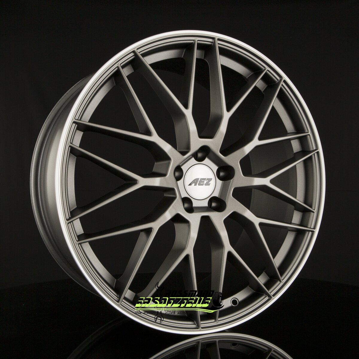 4x AEZ Crest graphite matt polished lip 8x18 ET52 - LK5/112 ML70.1 Felge Alu