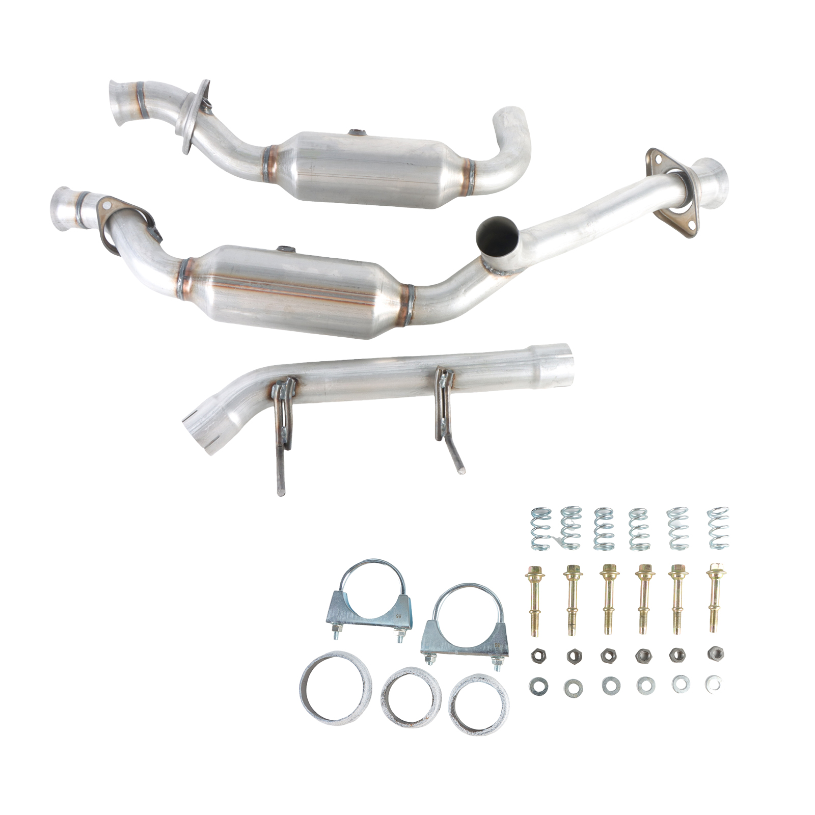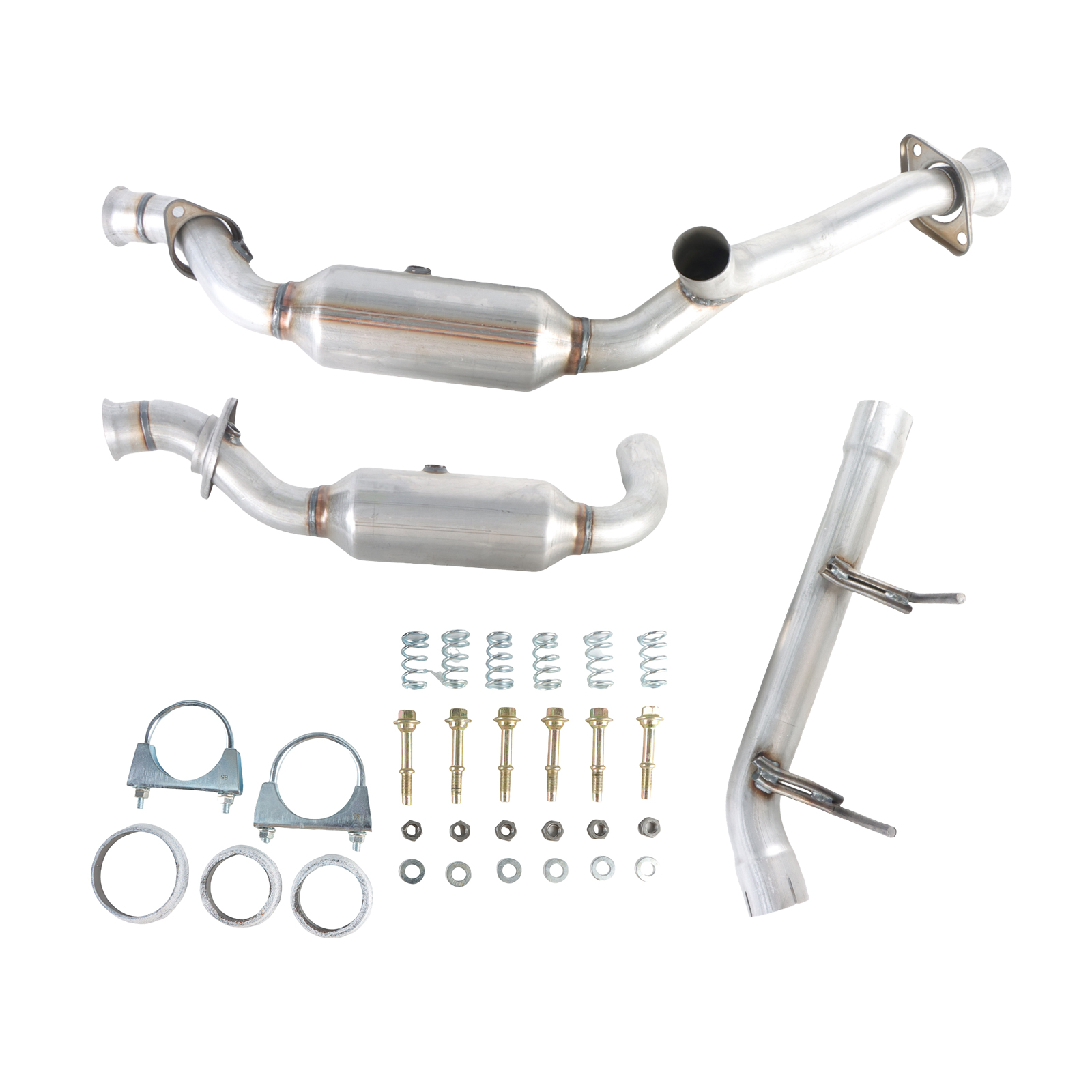 Specifications: Length(cm): 120 width(cm): 50 height(cm): 35 Weight(kg): 11 Material: Stainless Steel Color: iron This item includes: 3pcs+Bolts, Screw, Seal O2 Sensor Ports: 2 Body Length: 13 in Inlet Port Shape: 2 Bolt Welded Flange Inlet Diameter: 2.5 IN Outlet Port Shape: 2 Bolt welded flange Outlet Diameter: 2.5 IN Fits For: Ford F 150 3.5L 2011 -2014 Part Number: 53969, 50495 If your vehicle is registered in CA, NY, CO & ME, do not purchase this part. If your vehicle meets California requirements, but is not registered in CA, NY, CO & ME, this converter will work on your vehicle. Package Included 1 Set Catalytic Converter w/Installation Accessories Please Note: Communication is the best way to solve the problem. If you have any problems after purchasing, please contact us in time, before opening return or case. Note: Communication is the best way to solve the problem. If you have any problems after purchasing, please contact us in time, before opening return or case Please BE AWARE that the vehicle compatibility list on eBay may not be 100% accurate. Please be very careful to check our photos, make sure the photos showed is the same as you wanted. Please compare the part number with your original One before purchasing! We will NOT pay for your installation fee or return shipping fee caused by incompatibility! If the item can not work properly for you, please contact our Customer Service before you open the case via e-bay or pay-pal. Please contact us first when return, exchange and refund is required. Any direct return of purchased items will not be processed.