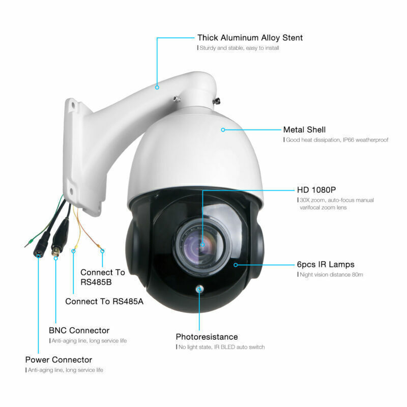 Mini 4in1 PTZ 1080P Security Camera 30x Zoom IR Outdoor Medium Speed Dome 2MP